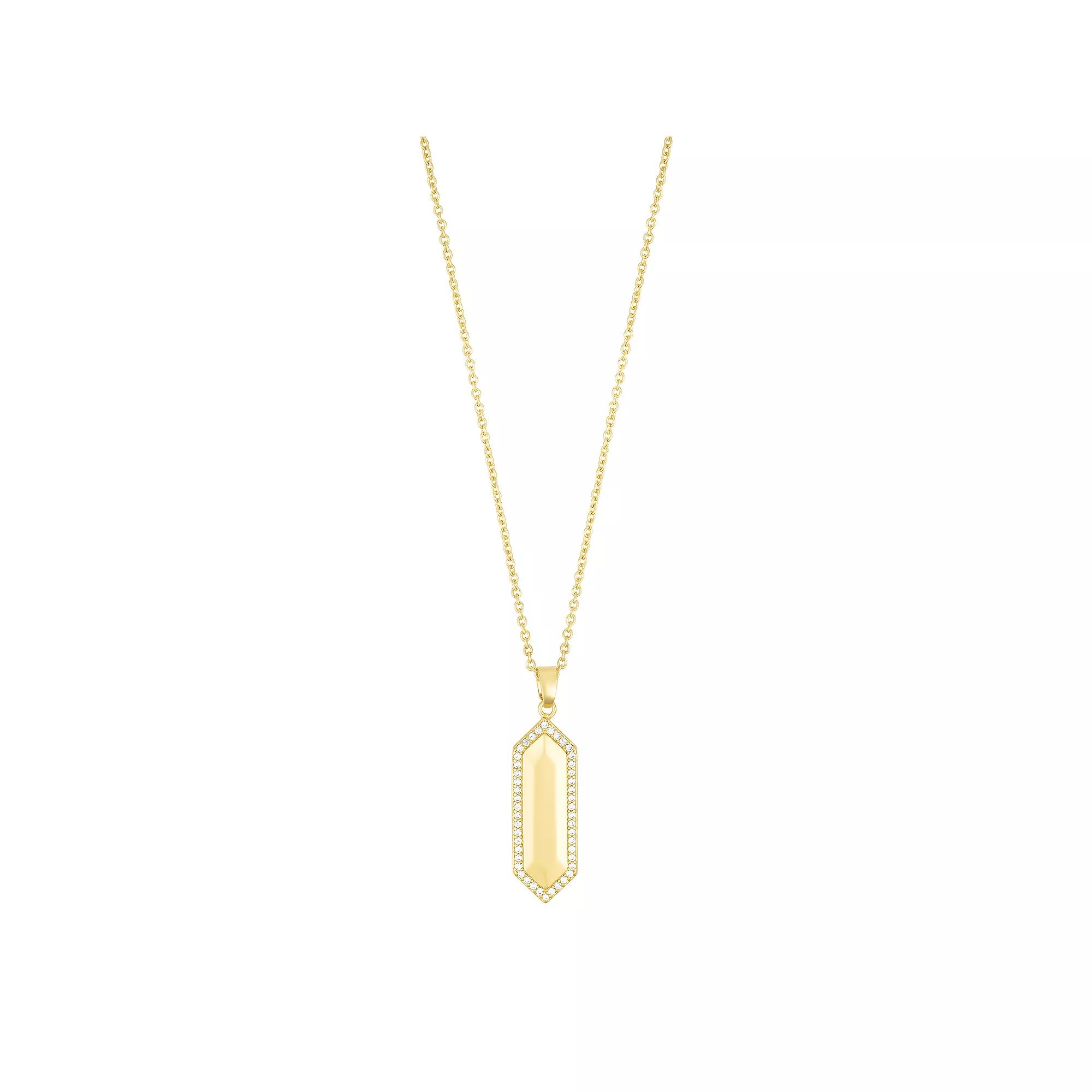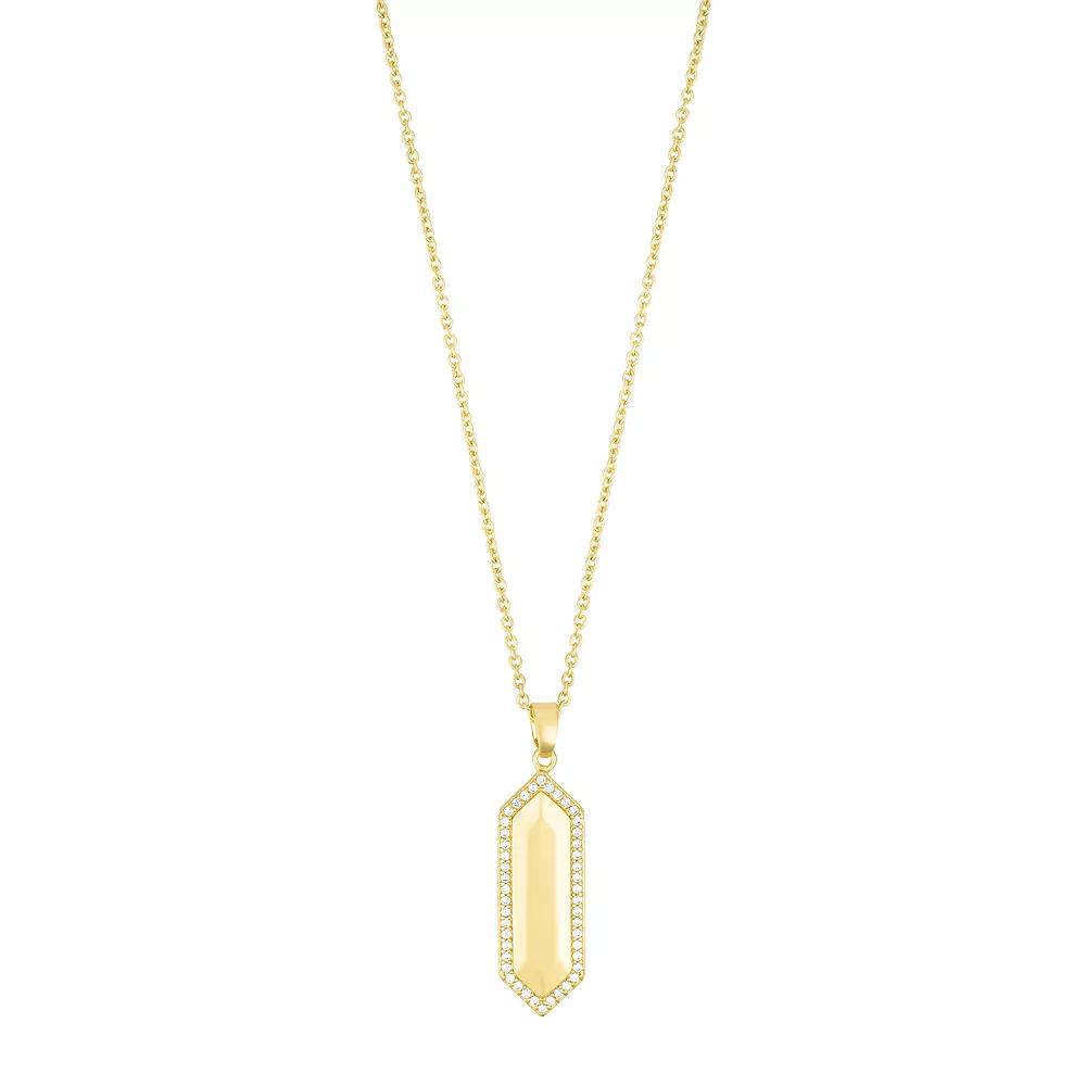 You'll love the charming style of this Adornia Elongated Cubic Zirconia Pave Hexagon Necklace. Click on this JEWELRY & WATCHES GUIDE to learn about fit, styles, materials and more! You'll love the charming style of this Adornia Elongated Cubic Zirconia Pave Hexagon Necklace. Click on this JEWELRY & WATCHES GUIDE to learn about fit, styles, materials and more! FEATURES Pendant length: 1 in. Chain length: 16 in. + 2-in. extender Chain type: cable Clasp: lobster-claw Metal: brass Plating: gold tone Finish: polished Packaging: boxed Nickel free ImportedSTONE DETAILS Stone type: cubic zirconia Shape: round Setting: pave Gemstones may have been treated to enhance their appearance. Special care may be required. Please visit our Gemstone Treatment & Special Care Guide for more information. Size: 15-19" ADJ. Gender: female. Age Group: adult. Material: Gold Plate.