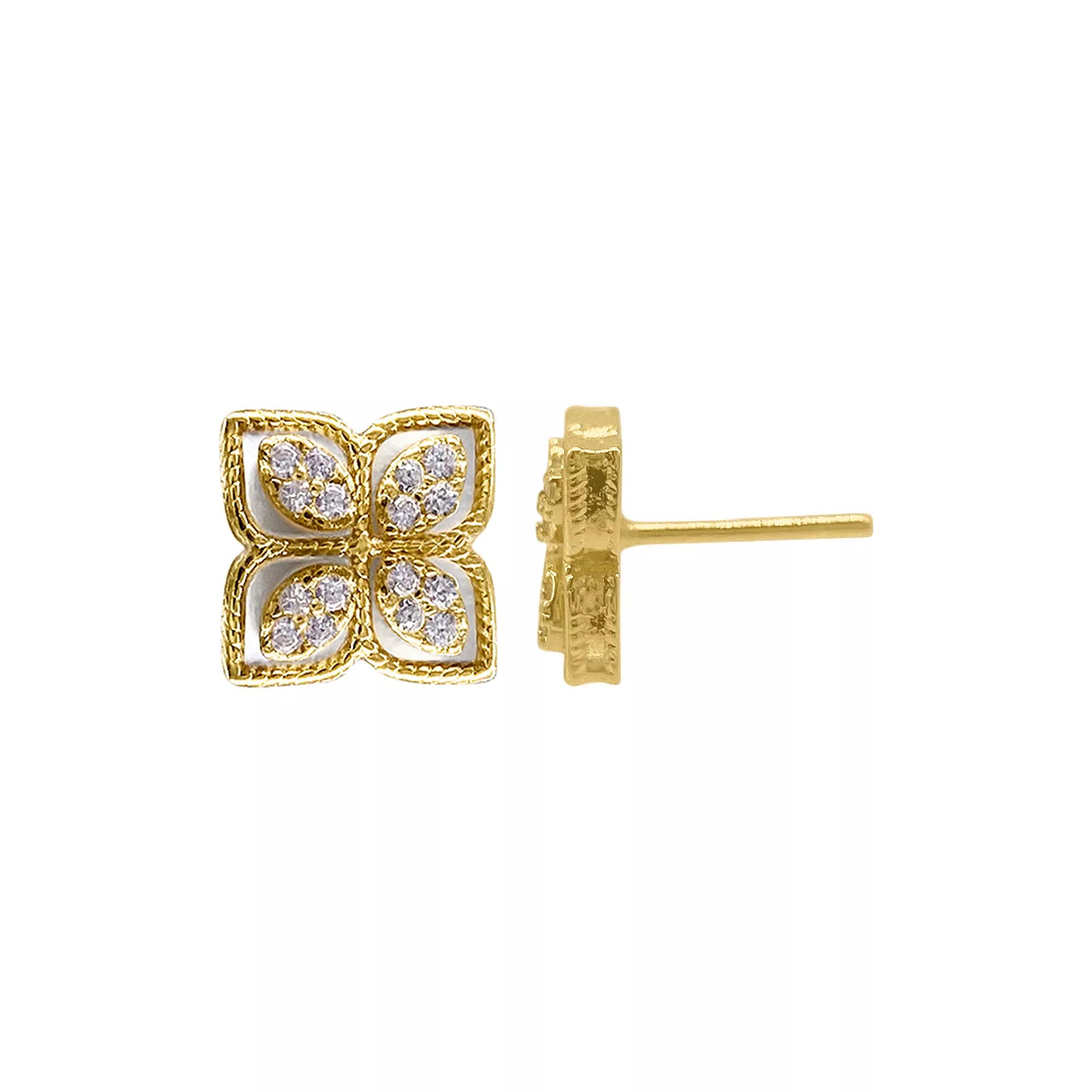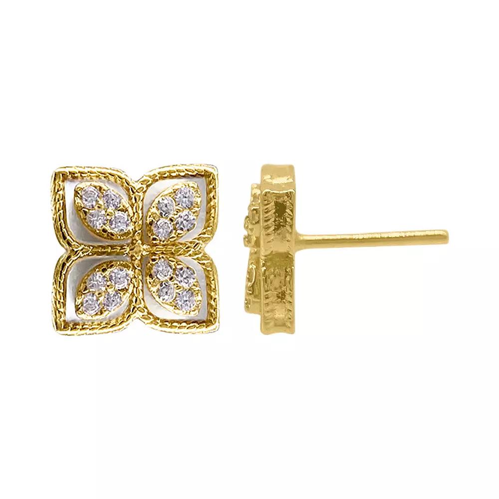 Turn heads with these Adornia Reissance Flower Crystal Mother of Pearl Earrings. Turn heads with these Adornia Reissance Flower Crystal Mother of Pearl Earrings. Metal: brass Finish: polished Packaging: pouch Plating: 14k gold Earring length: .25 in. Additional material: crystal Size: One Size. Color: White. Gender: female. Age Group: adult. Material: Gold Plate.