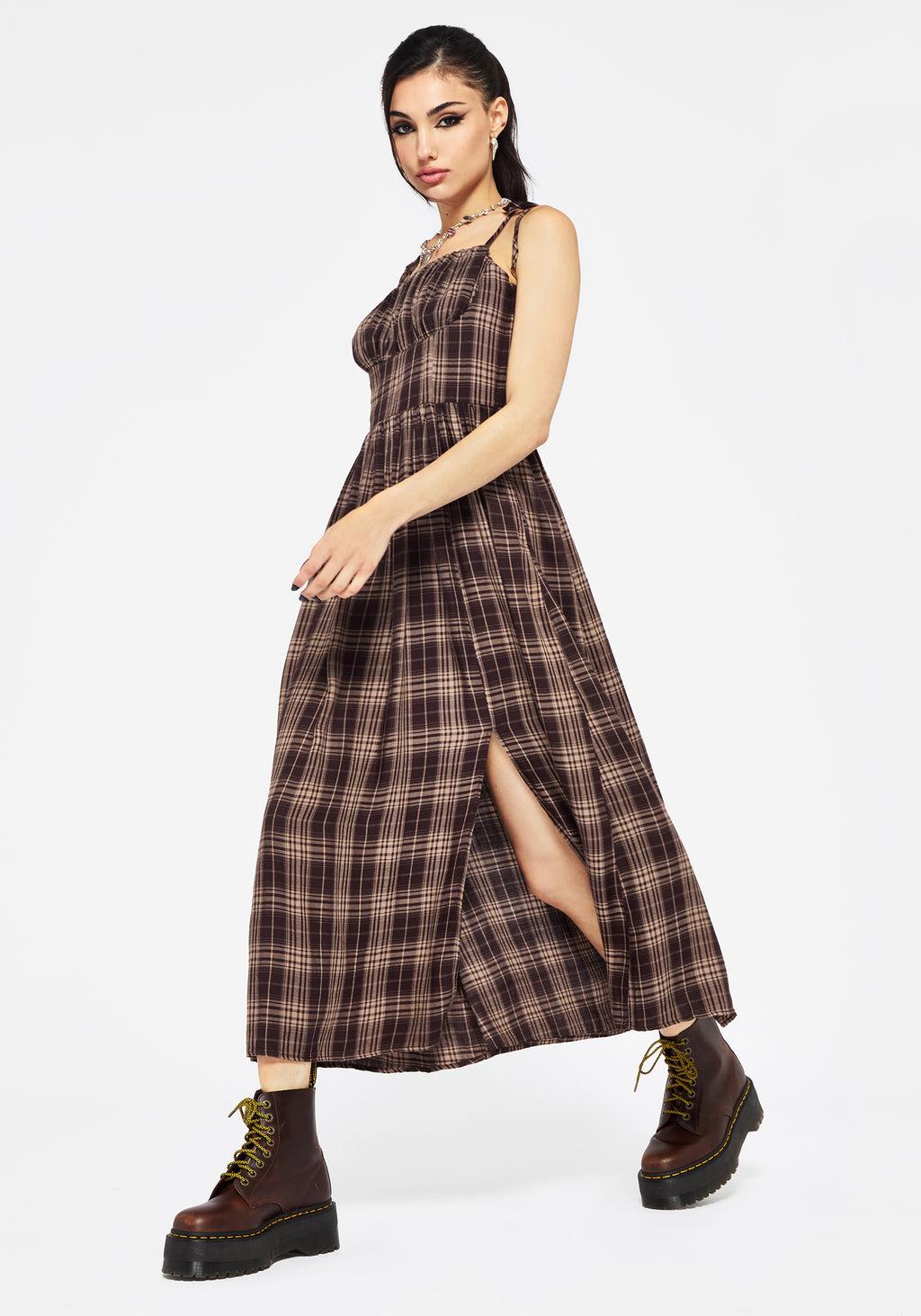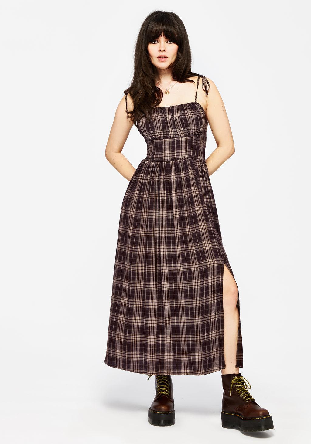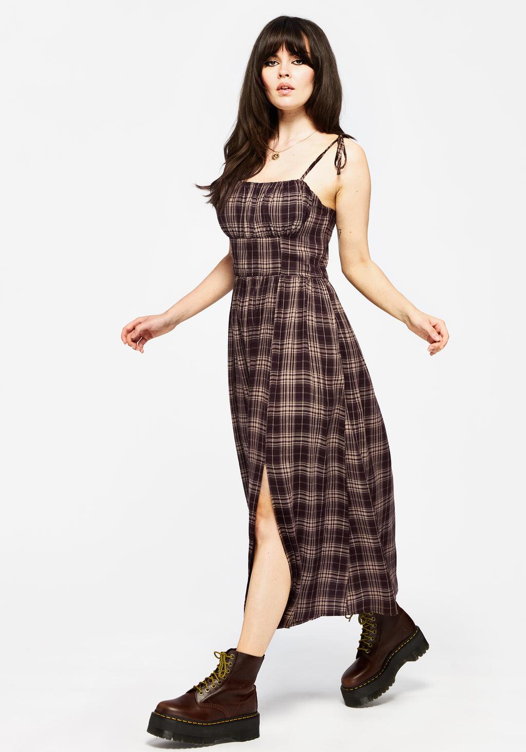 Adra Check Cami Tie Strap Midi Dress