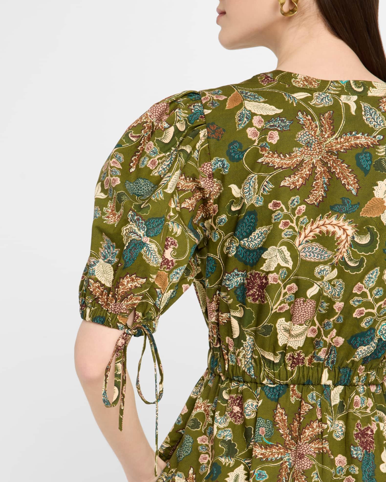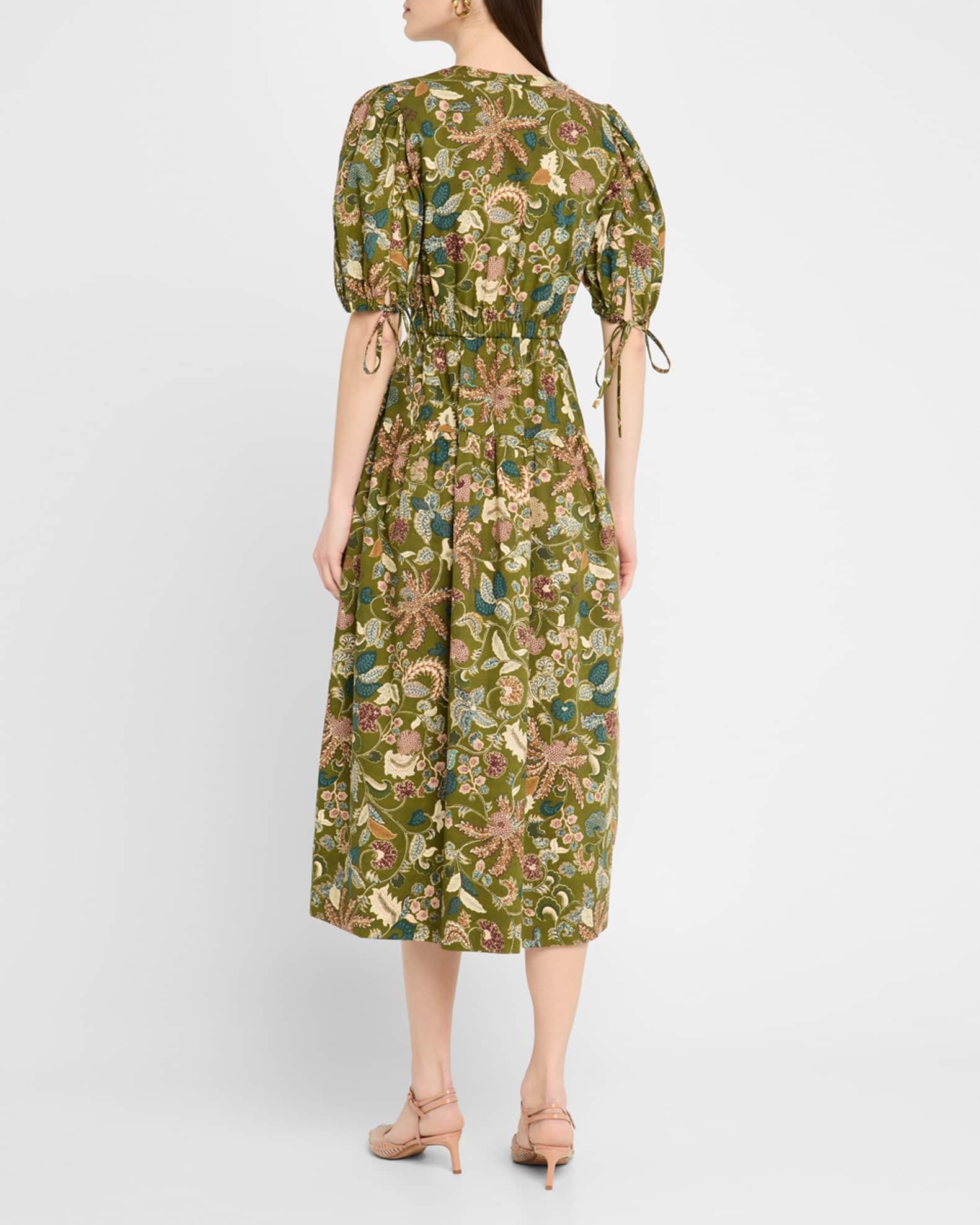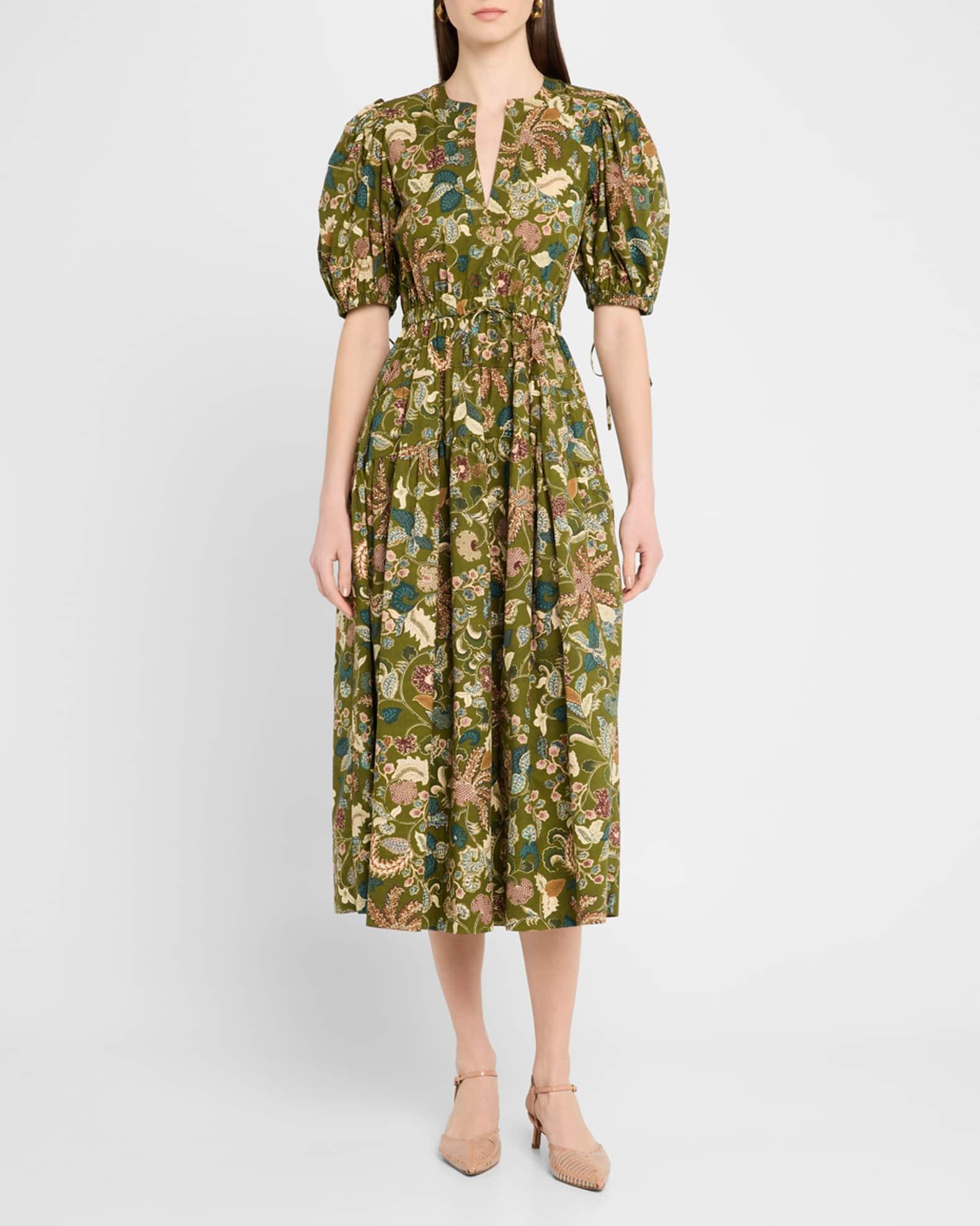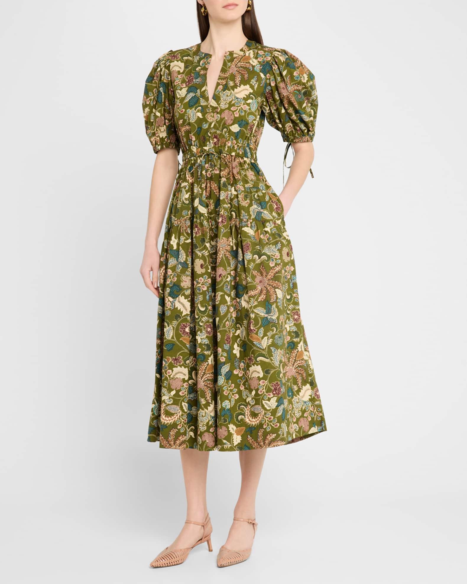 Adriana Puff-Sleeve V-Neck Midi Dress