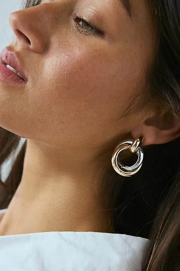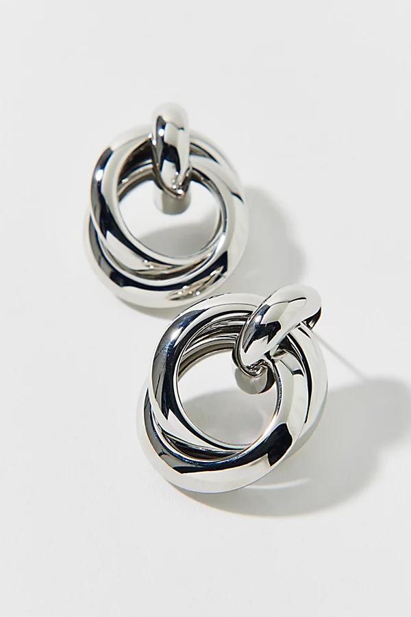 Classic hoop earrings with a twist. This double-hoop design adds added dimension to your look. Features Adriana statement twist hoop earring Double-layer twisted hoop earrings Post backing Content + Care Mixed metal Avoid contact with water Imported Adriana Statement Twist Hoop Earring in Silver, Womens at Urban Outfitters