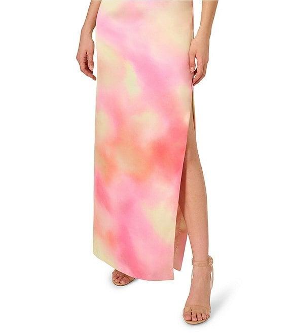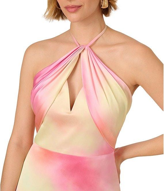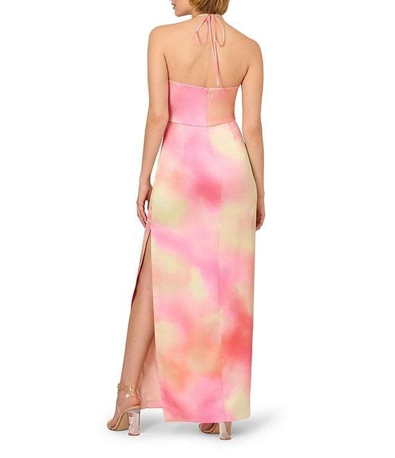 Adrianna by Adrianna Papell Keyhole Neck Sleeveless Tie Dye Printed Sateen Column Gown