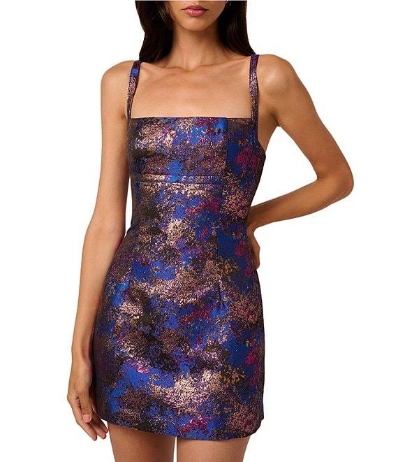 From Adrianna by Adrianna Papell, this dress features: Metallic jacquard fabrication A-line silhouette Square neckline Sleeveless Wide straps Fully lined Straight hemline Center back zip closure Approx. 35" length Polyester/elastane Dry clean Imported.