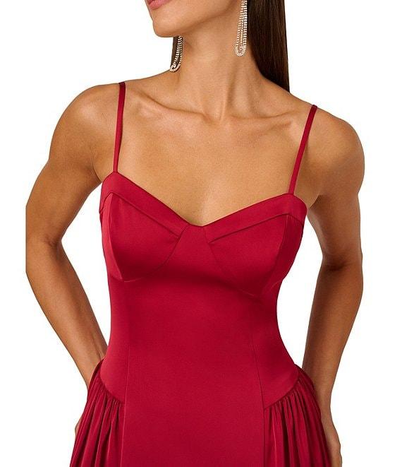 From Adrianna by Adrianna Papell, this dress features: Stretch satin fabrication A-line silhouette Sweetheart neckline Sleeveless Spaghetti straps Bust seams Side flares Fully lined Straight hemline Center back zip closure Approx. 45" length Polyester/elastane Dry clean Imported.