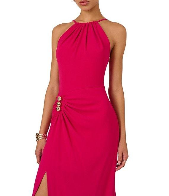 Adrianna Evening By Adrianna Papell Crepe Halter Neckline Sleeveless Hardware Sheath Dress