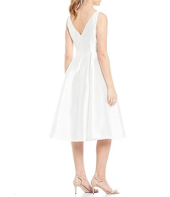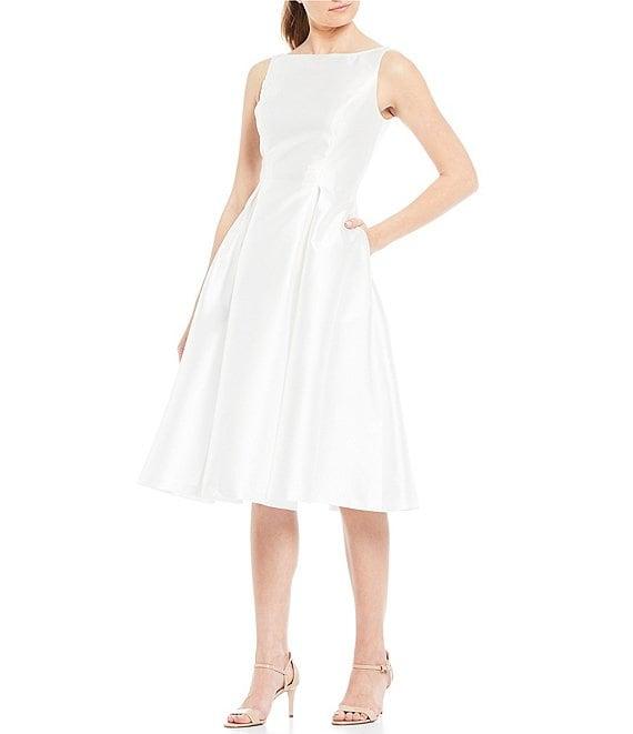 Adrianna Papell Boat Neck Sleeveless A-Line Taffeta Midi Dress