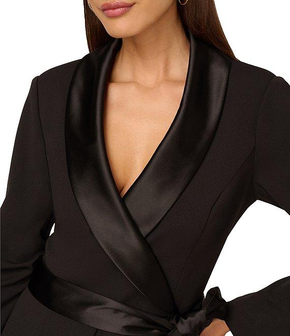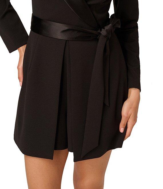 From Adrianna Papell, this romper features: Crepe fabrication V-neckline Self tie belt Long sleeves Zip back closure Approx. 3.5" inseam Polyester/elastane Machine wash Imported.