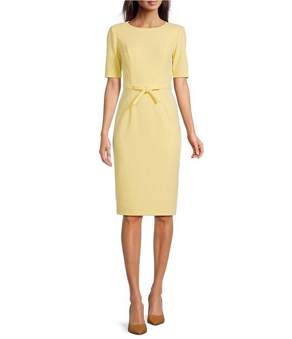 Adrianna Papell Crew Neck Short Sleeve Bow Front Crepe Sheath Dress