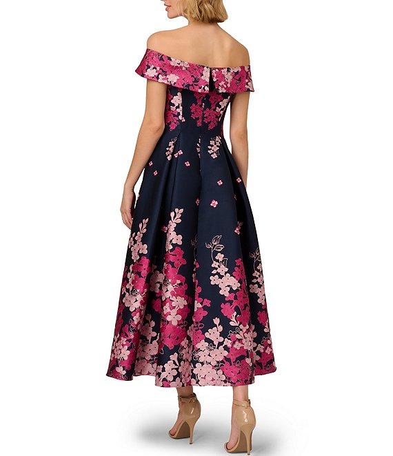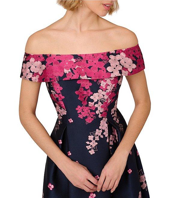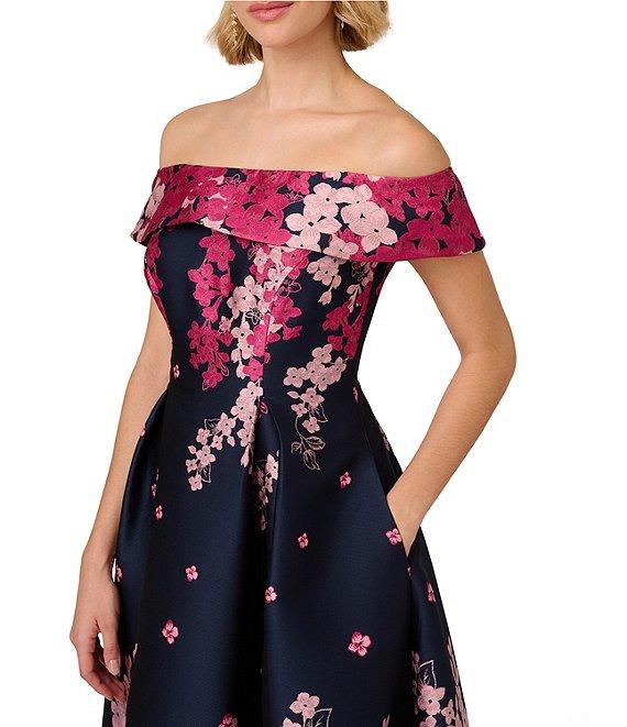 From Adrianna Papell, this dress features: floral jacquard fabrication off-the-shoulder sleeveless fully lined center zip back closure approx. 53" length from shoulder to hem polyester dry clean Imported.