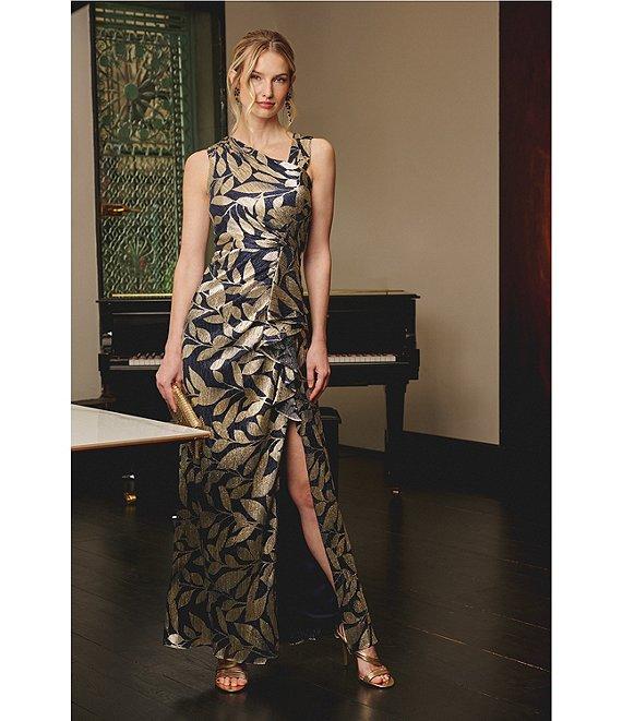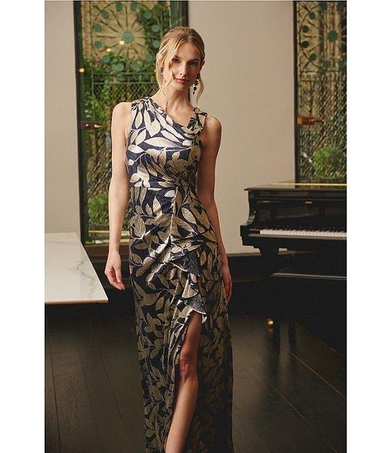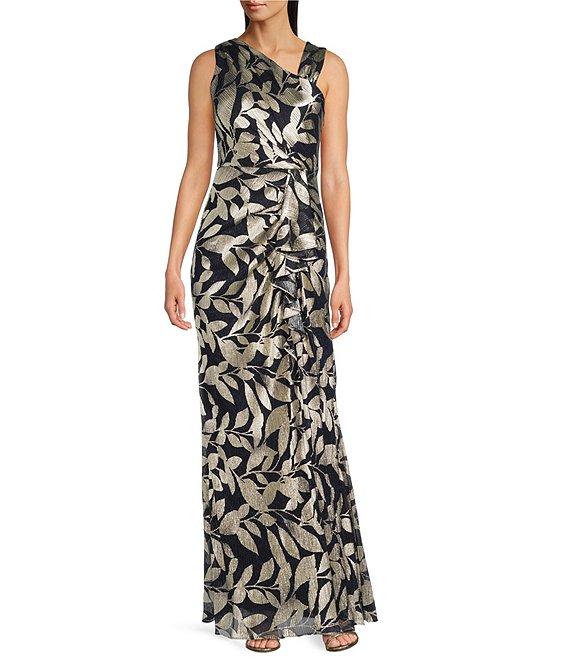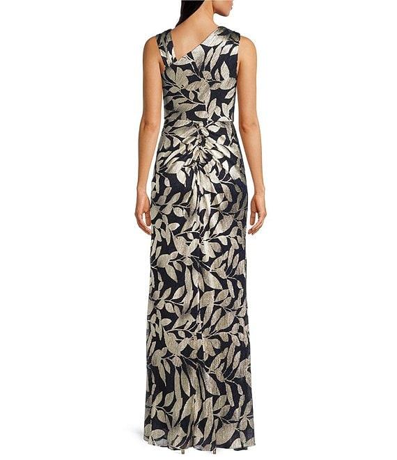 Adrianna Papell Metallic Asymmetrical Neck Sleeveless Gown