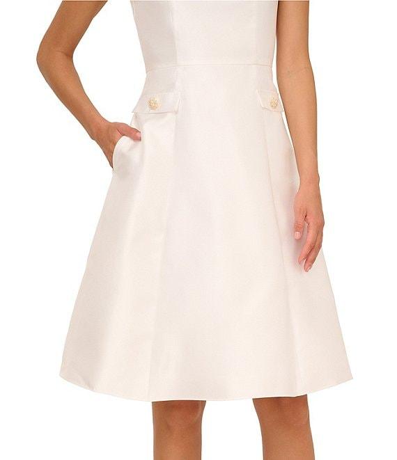 Adrianna Papell Mikado Boat Neck Button Sleeveless Midi Dress