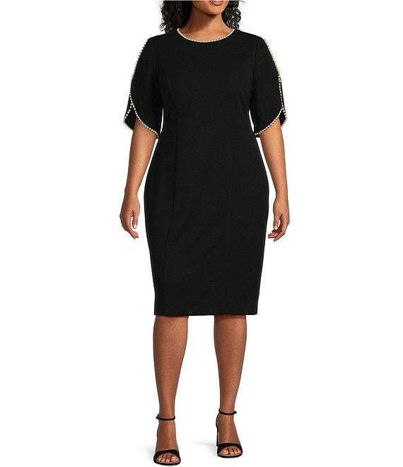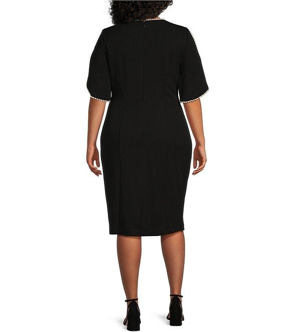 Adrianna Papell Plus Size Crew Neck Pearl Trim Crepe Dress