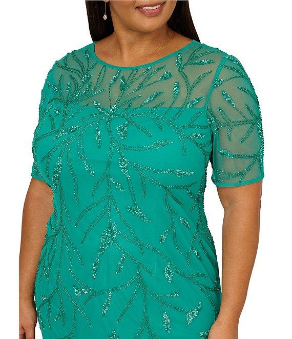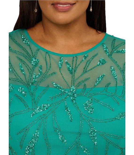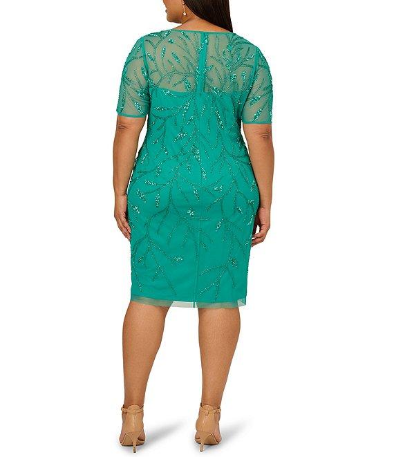 Adrianna Papell Plus Size Short Sleeve Beaded Sheath Dress