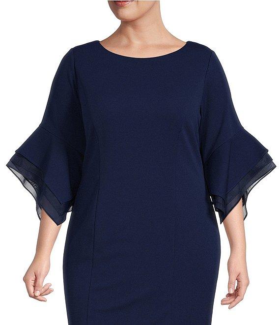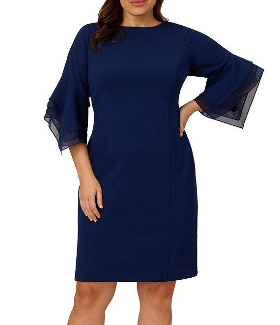 Adrianna Papell Plus Size Stretch Crepe 3/4 Bell Sleeve Sheath Dress