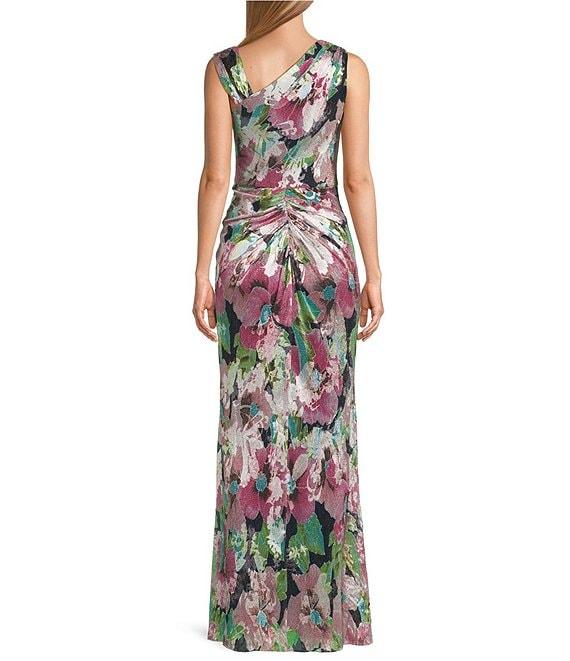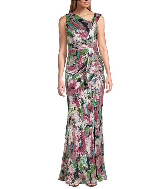 Adrianna Papell Sleeveless Floral Print L-Neck Gown