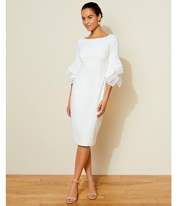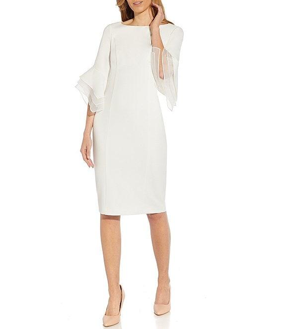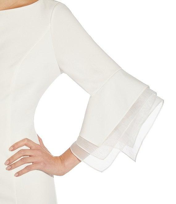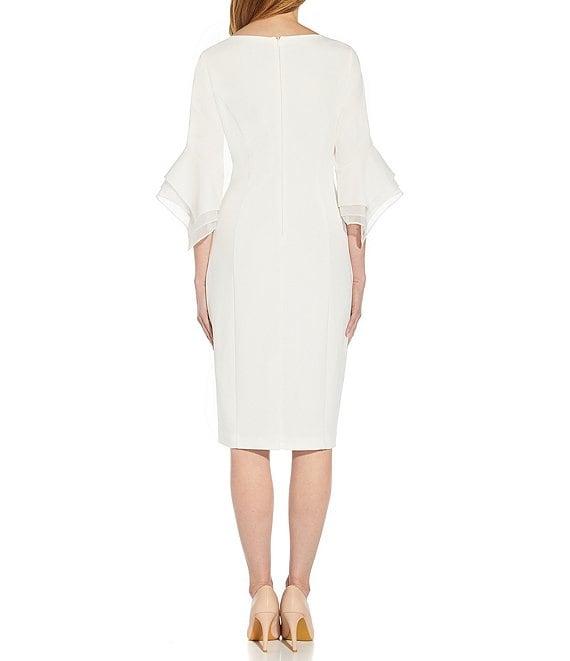 Adrianna Papell Stretch Crepe 3/4 Bell Sleeve Boat Neck Sheath Dress