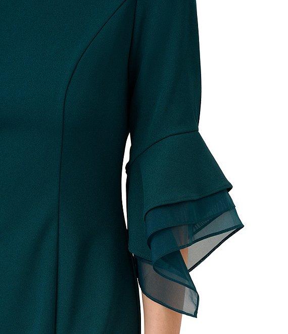 Adrianna Papell Stretch Crepe 3/4 Bell Sleeve Boat Neck Sheath Dress