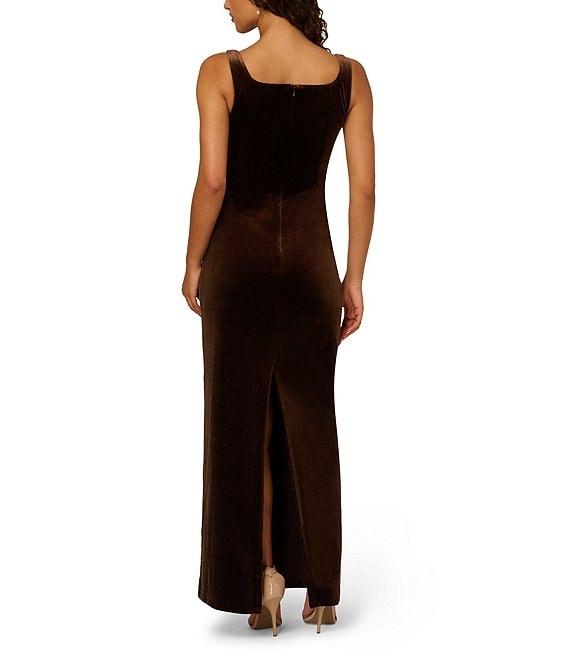 Adrianna Papell Velvet Floral Beaded Square Neck Sleeveless Gown