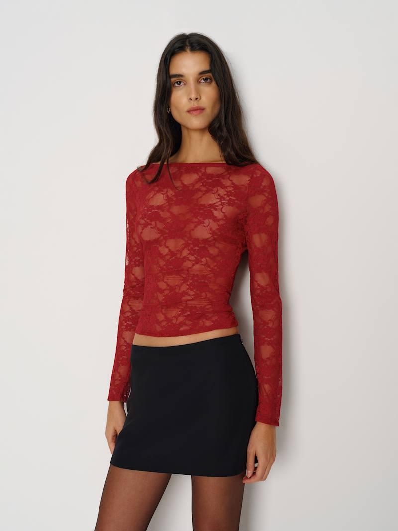 Don't flirt with me. Shop the Adriano Knit Top from Reformation, a fully sheer long sleeve top with a boat neckline.