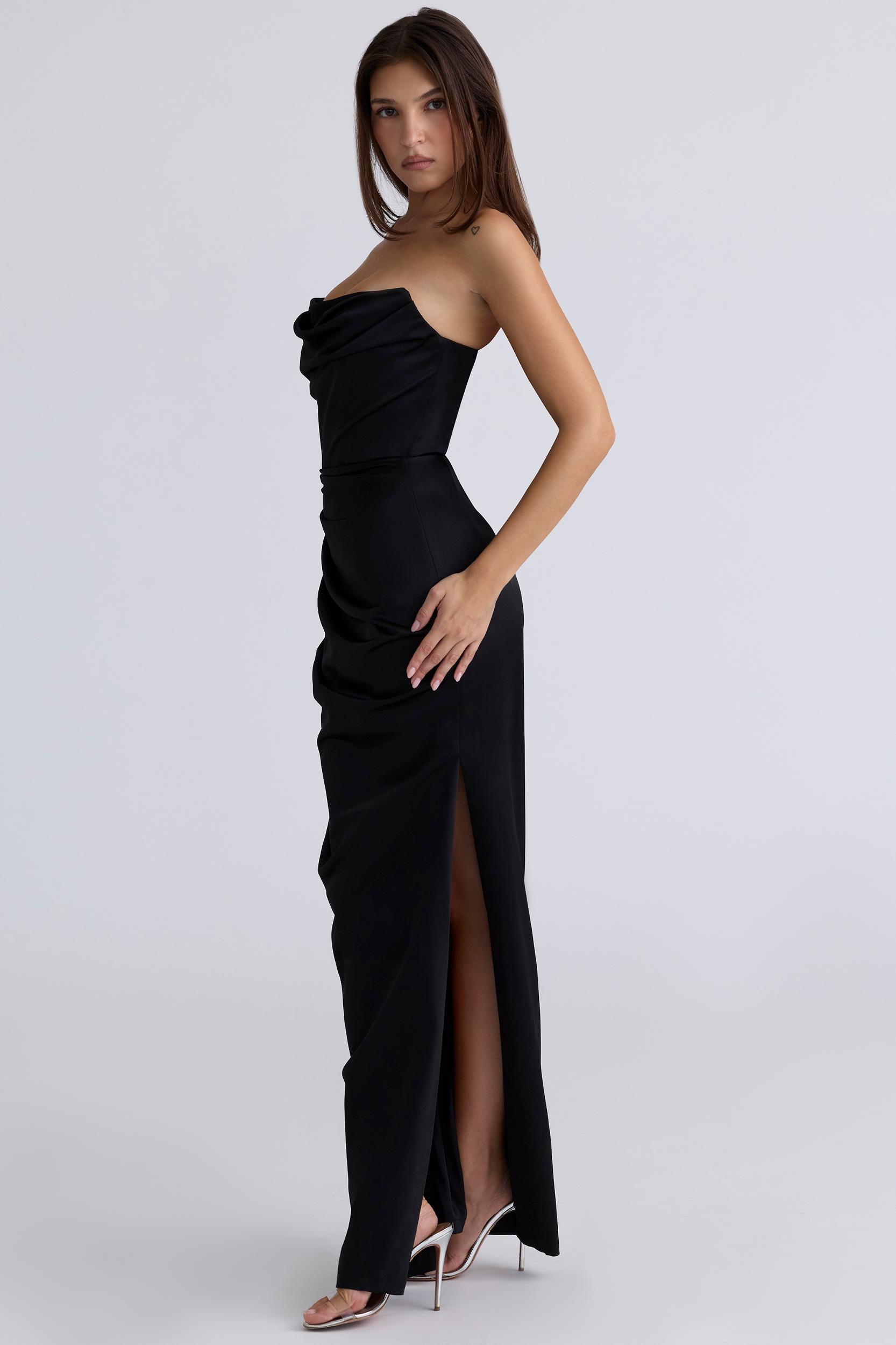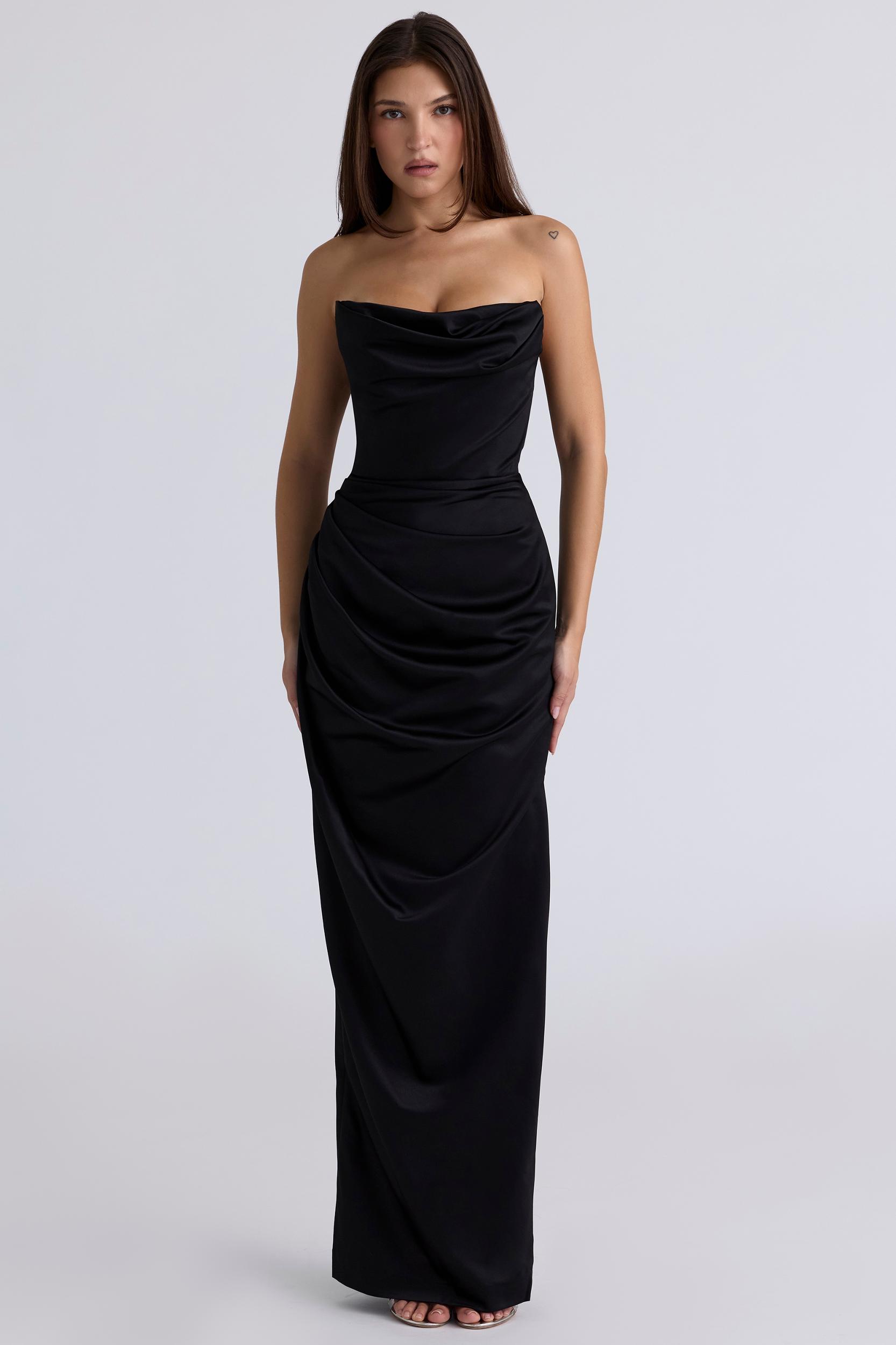 The long skirt drapes gracefully over the hips with pretty gathers over the side and the hem dramatically grazes the floor. The skirt is fully lined in tonal stretch fabric for a super smooth and seam free finish. This is suitable for all bust types as it has no cups but the superb corsetry provides ultimate support and uplift. A bra is not necessary but it can be worn if desired. The 'Regular Cup' option suits cup size A-C whilst the 'Bigger Cup' option suits cup size D-E.