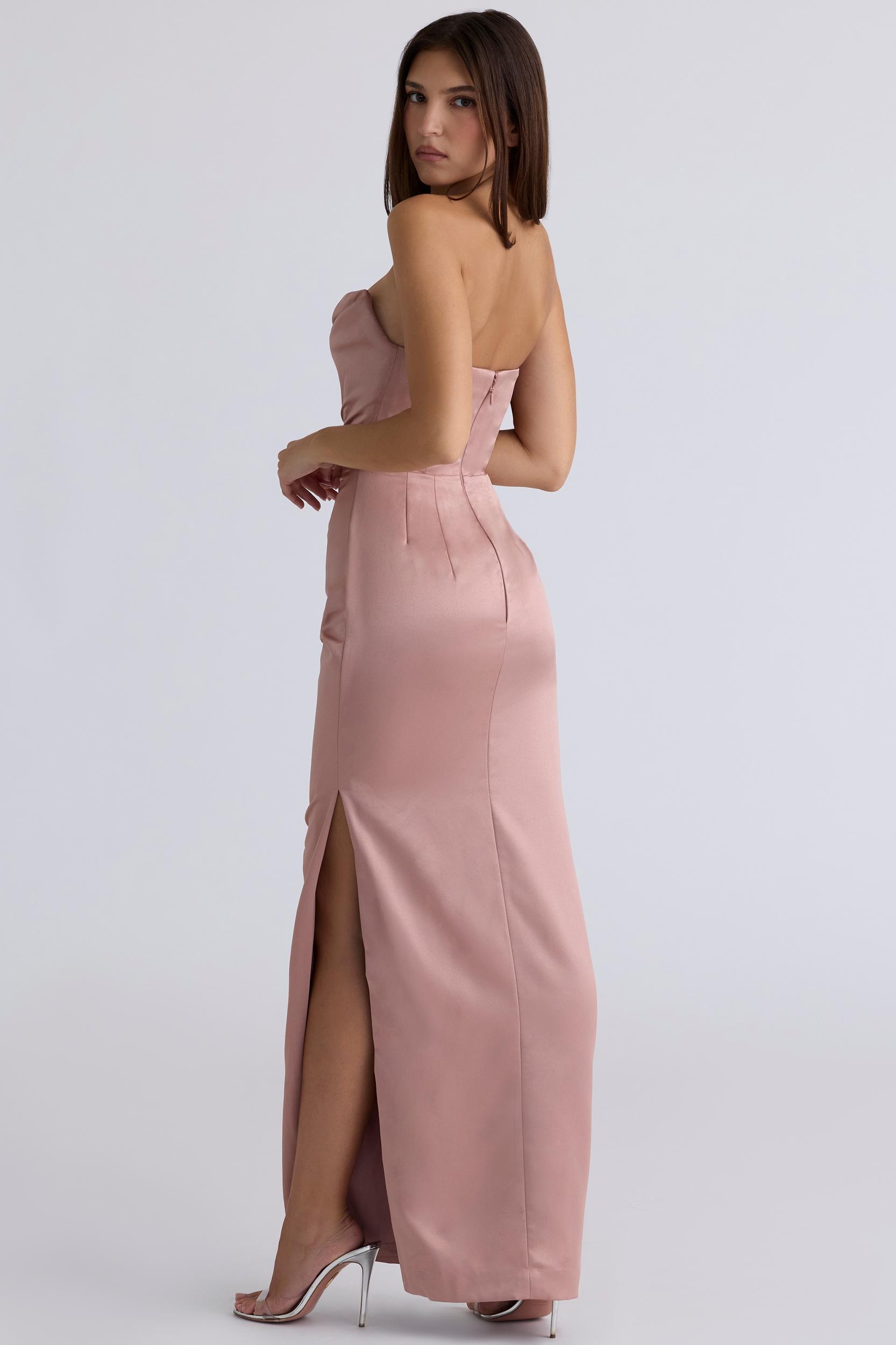 It's all about feminine tones and languid, sexy drapes with 'Adrienne'. Cut from our ultimate quality duchess satin it drapes sexily across the bust and cinches the waist. The internal structure is specially boned for ultimate lift and support and the corsetry continues through the the back. The long skirt drapes asymetrically over the hips and the hem dramatically sweeps the floor. Wear yours with barely there sandals such as 'Lucent'. The 'Regular Cup' option suits cup size A-C whilst the 'Bigger Cup' option suits cup size D-E.
