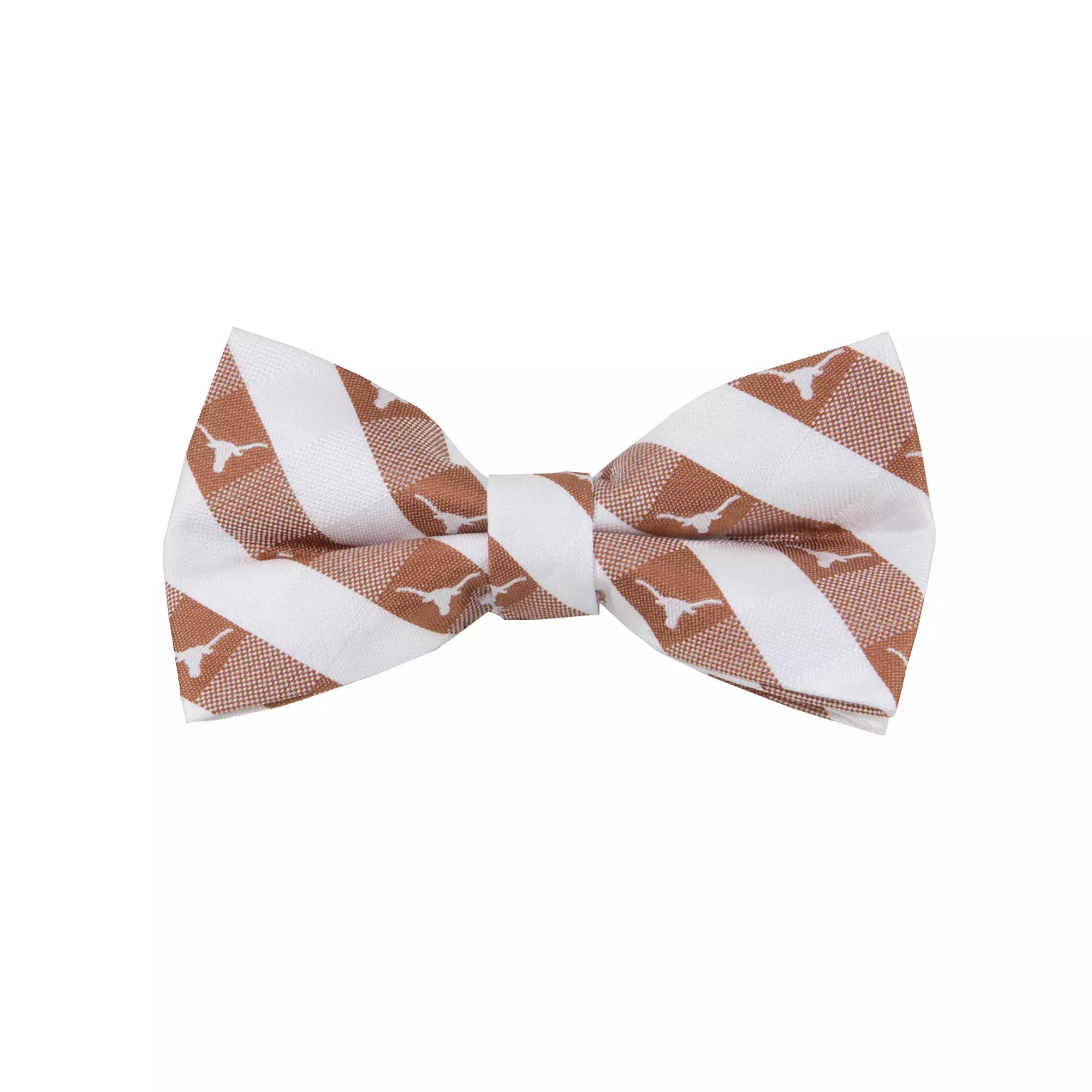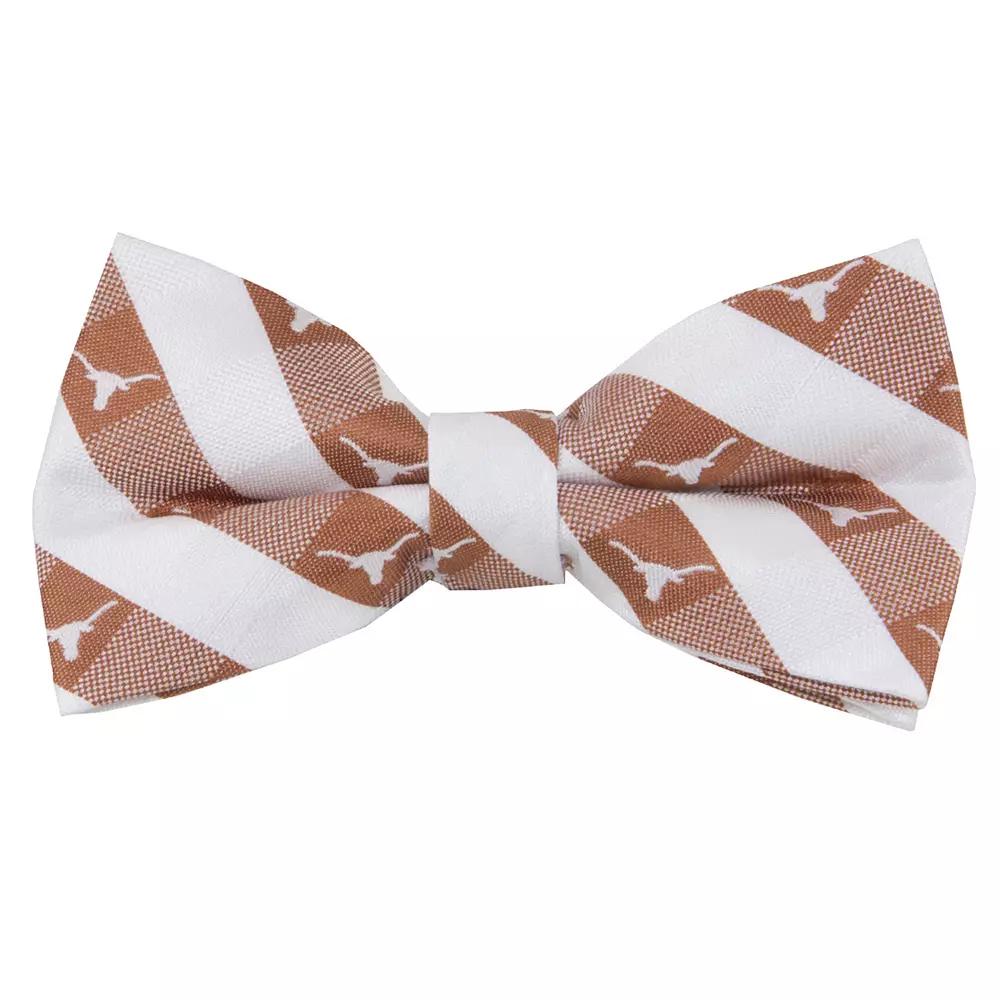 Cheer on your Texas Longhorns with this Check bow tie. Bring some formal to your fanaticism with the bold Texas Longhorns colors and embroidered graphics on this bow tie. Dont be afraid. Its a clip-on, so you dont have to worry about learning how to tie a bow tie. It is adjustable to fit just about any Texas Longhorns fan.