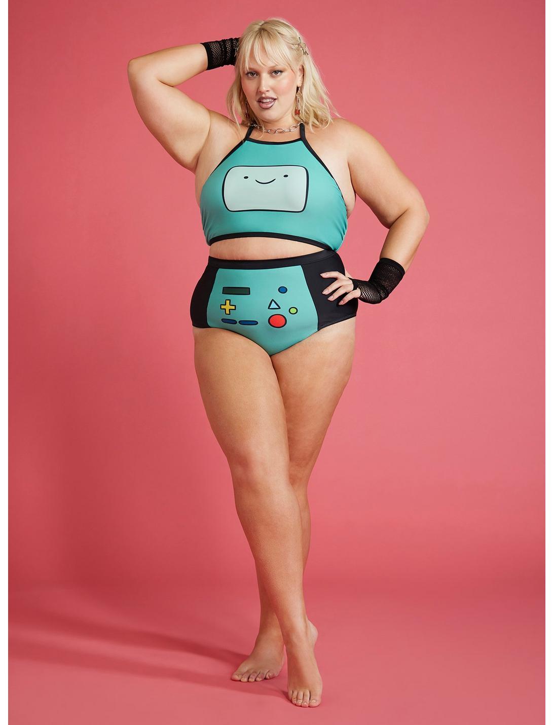 Our next adventure? The beach! Gear up for some fun in the sun with this Adventure Time swim top! It has a halter fit and features BMO's face printed on the front. Comes with removable padding and lace-up back ties. Pair it with the matching bottoms for the ultimate summer vibe!Bottoms not included.Swimwear can only be returned unworn with original tags intact and sanitary panel in place.82% nylon; 18% spandexHand wash cold; dry flatRemovable paddingImportedModel is 5'7''Model wears size 1