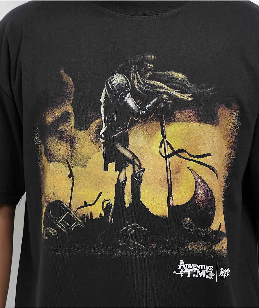 Adventure Time collaborates with Welcome Skateboards to deliver the Billy t-shirt in a solid black color with a screened graphic on the front. Picturing the warrior in his former glory above branding, the short sleeve depicts a young version of Billy