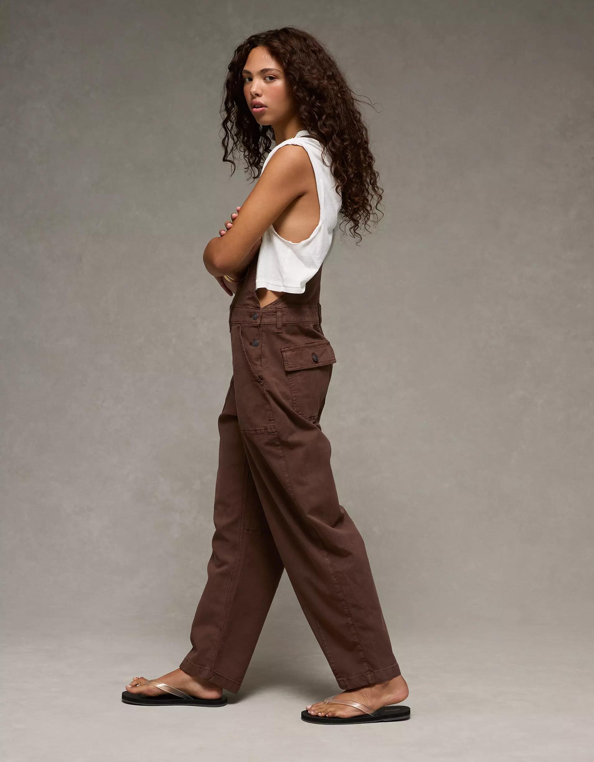 No Rush Washed Barrel Leg Jumpsuit - Brown Female