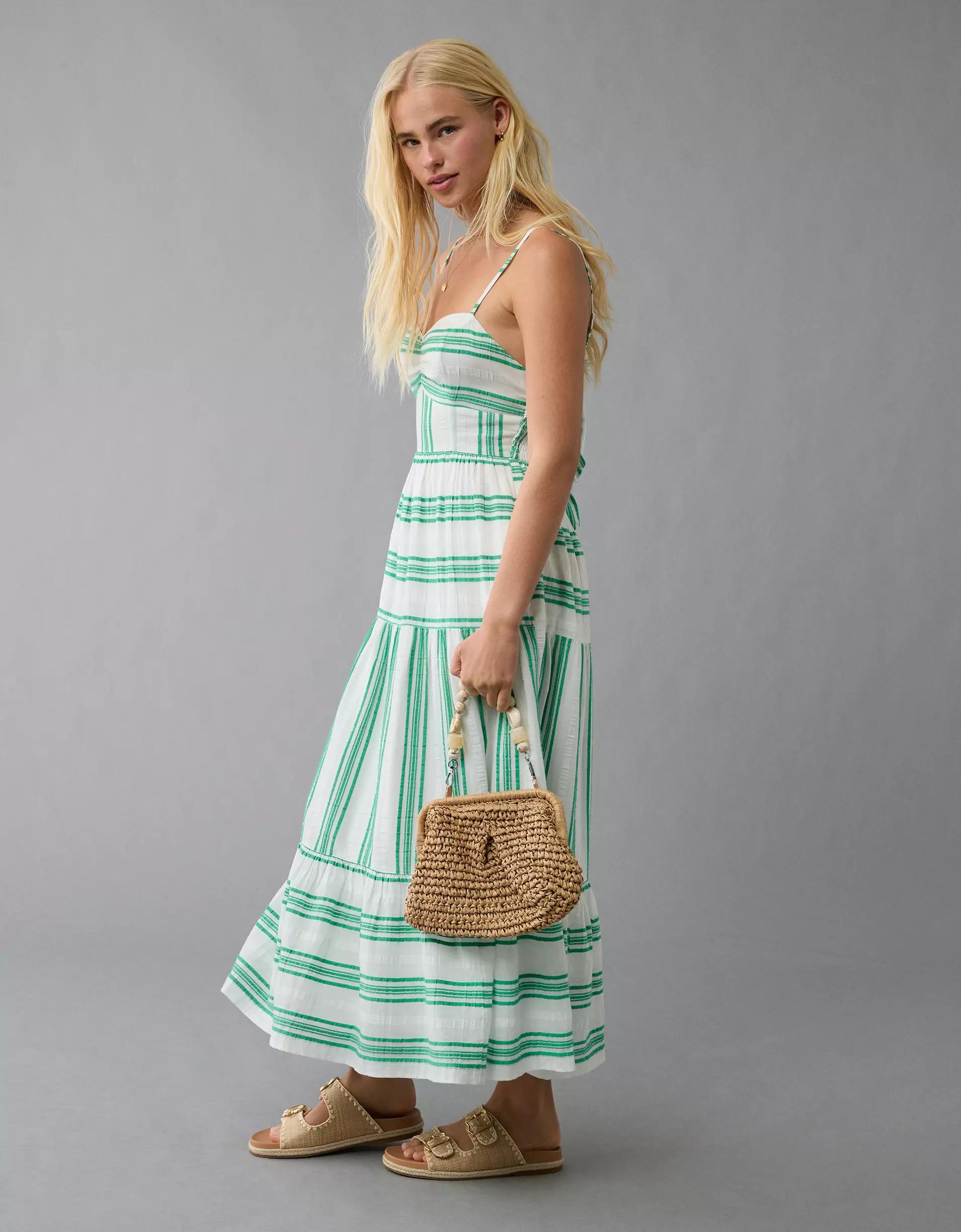 Meet Catie, a dreamy, feminine corset-inspired top on a flowy midi skirt.