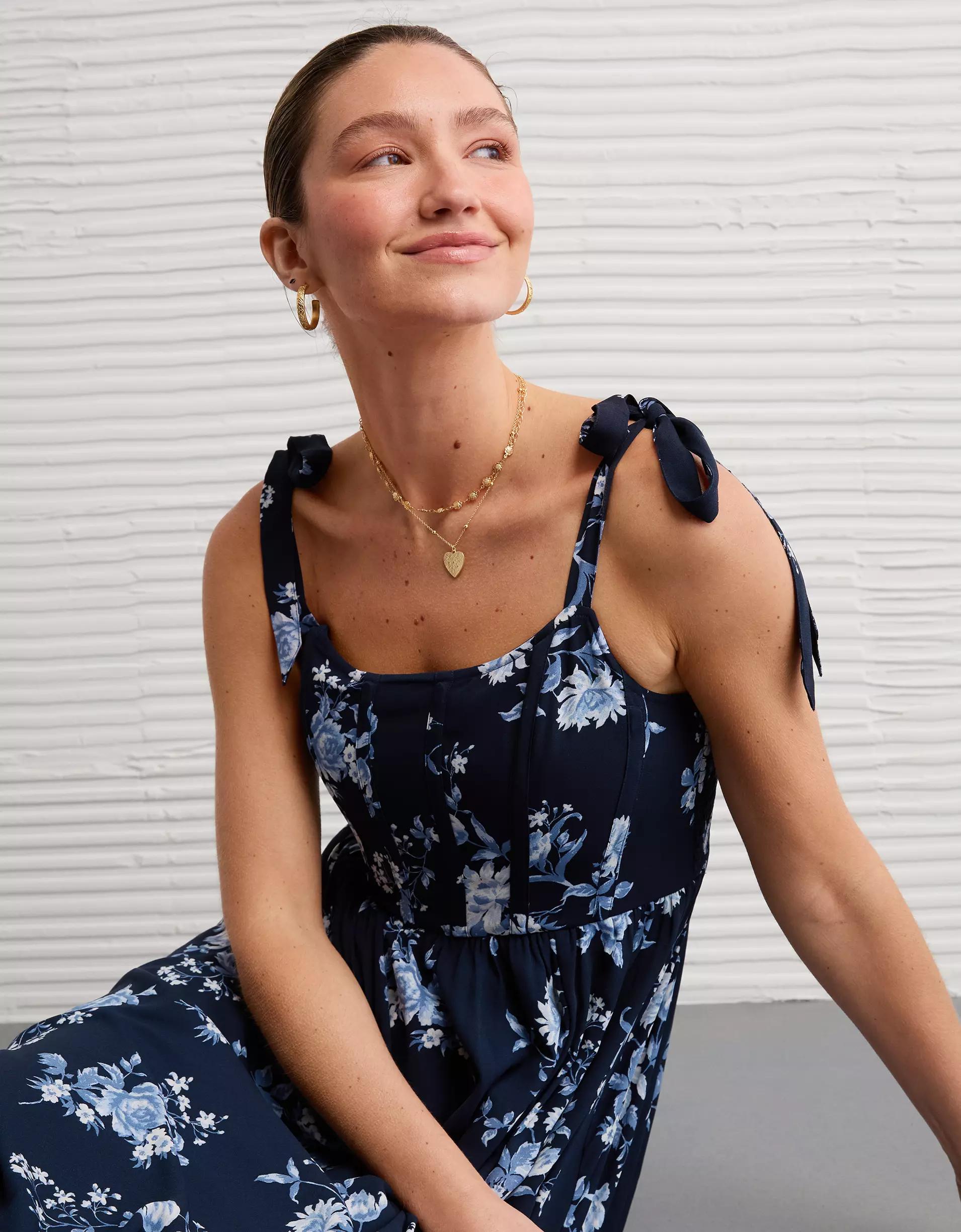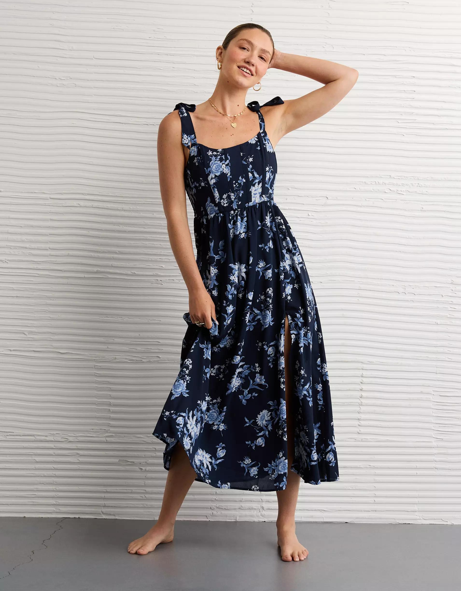 AE Corset Tie Strap Floral Midi Dress Women's