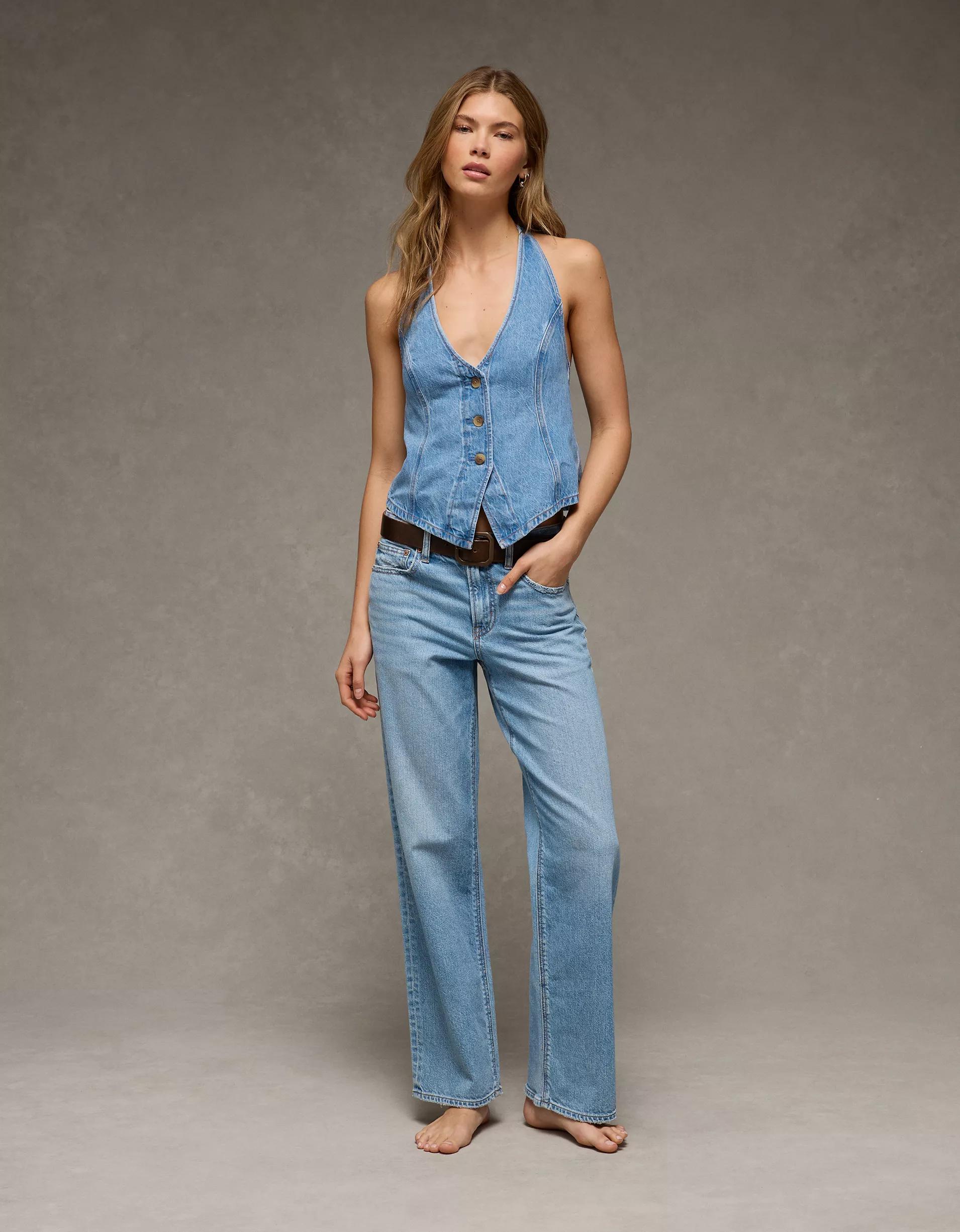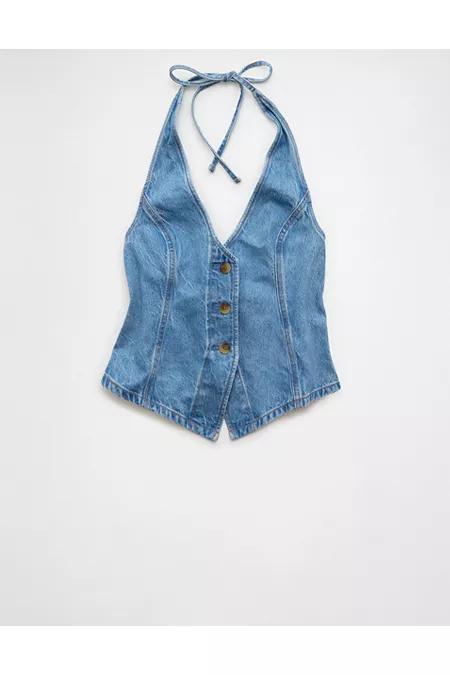 Iconic AE denim meets elevated workwear vibes in this chic halter vest.