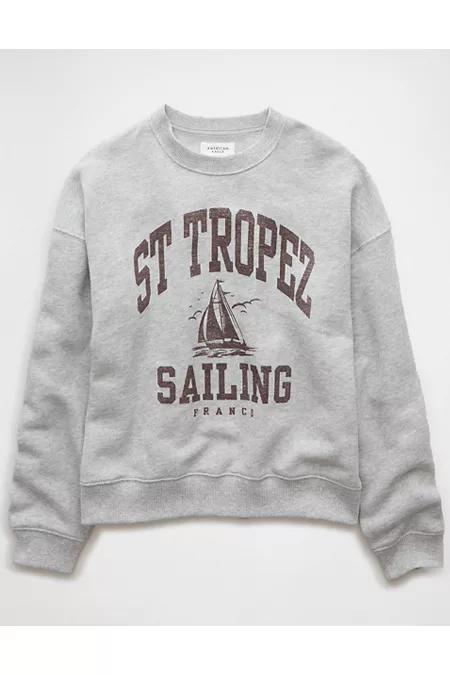 Super soft fleece/Crew neck/Destination graphic/Ribbed cuffs & hem/This sweatshirt is Real Good: Made with the planet in mind & a promise to continue to do better.