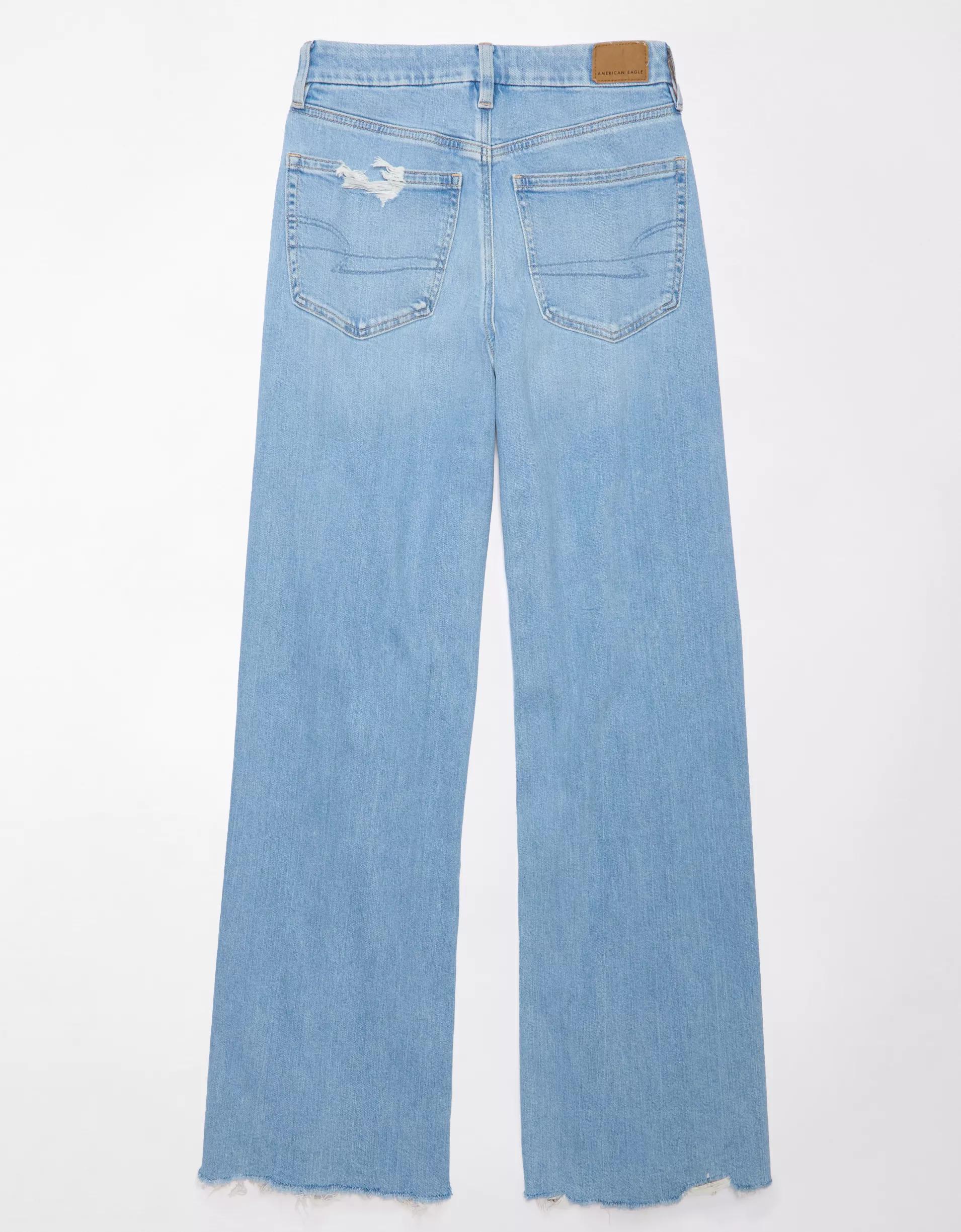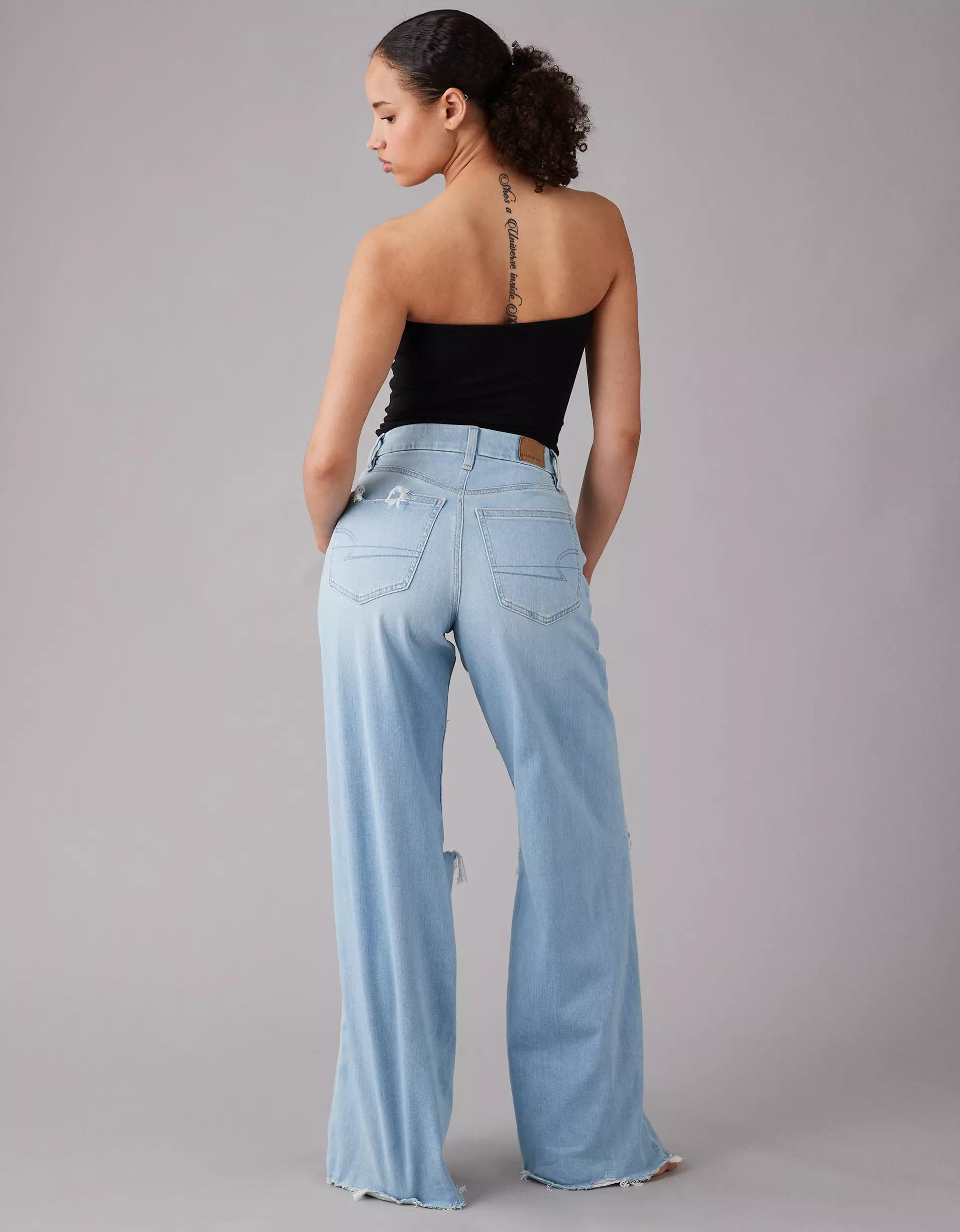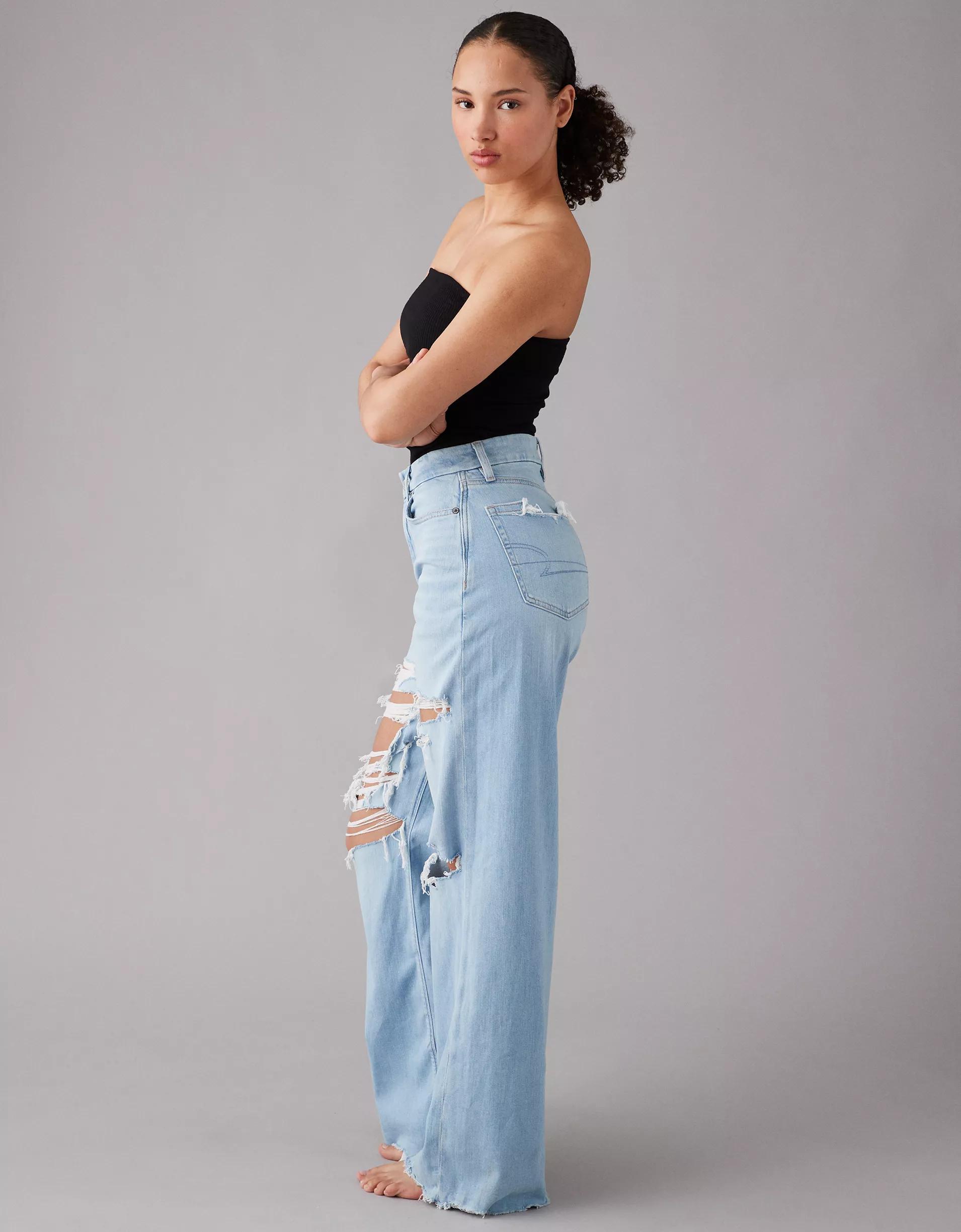 AE Dreamy Drape Stretch Curvy Super High-Waisted Ripped Baggy Wide-Leg Jean