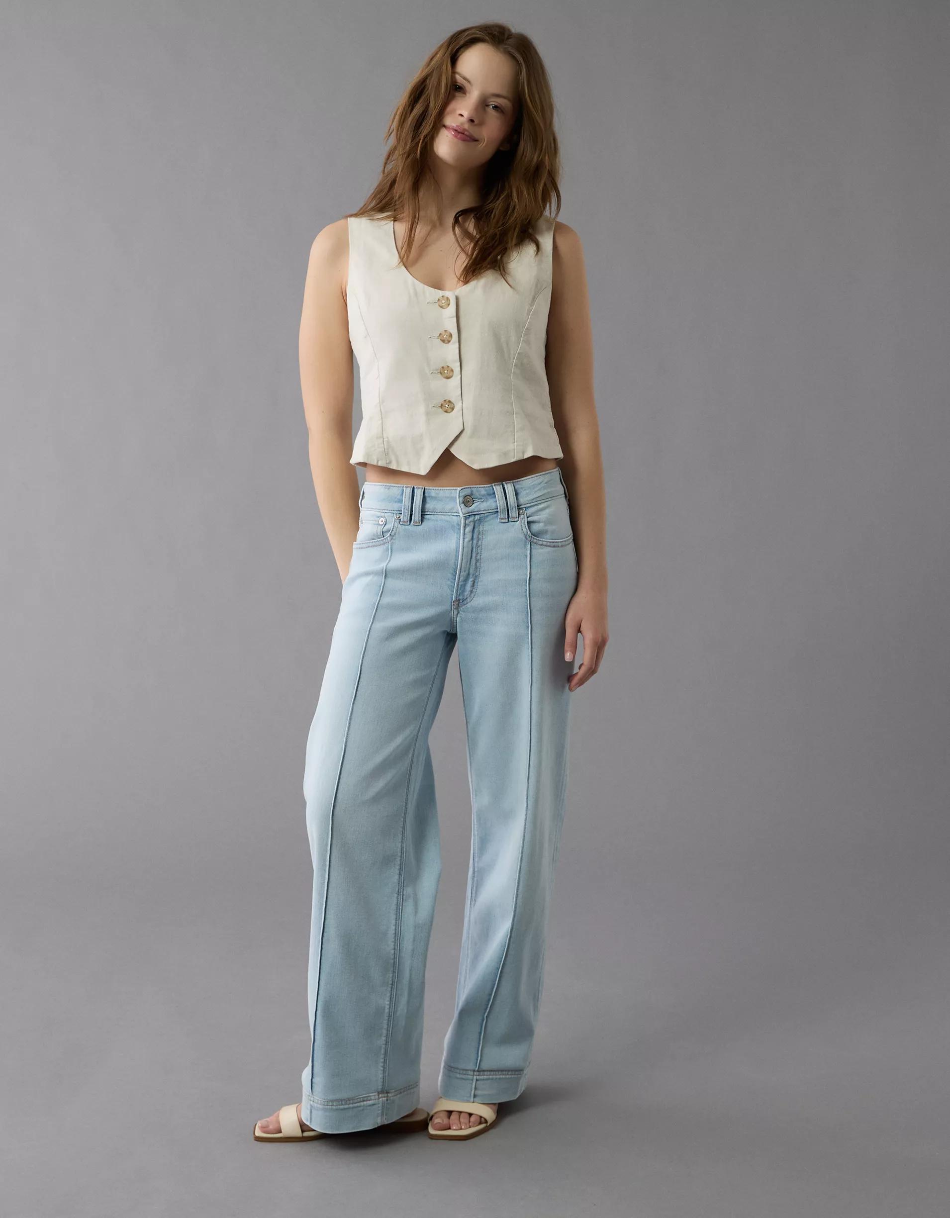AE Dreamy Drape Stretch Low-Rise Baggy Wide-Leg Jean Women's