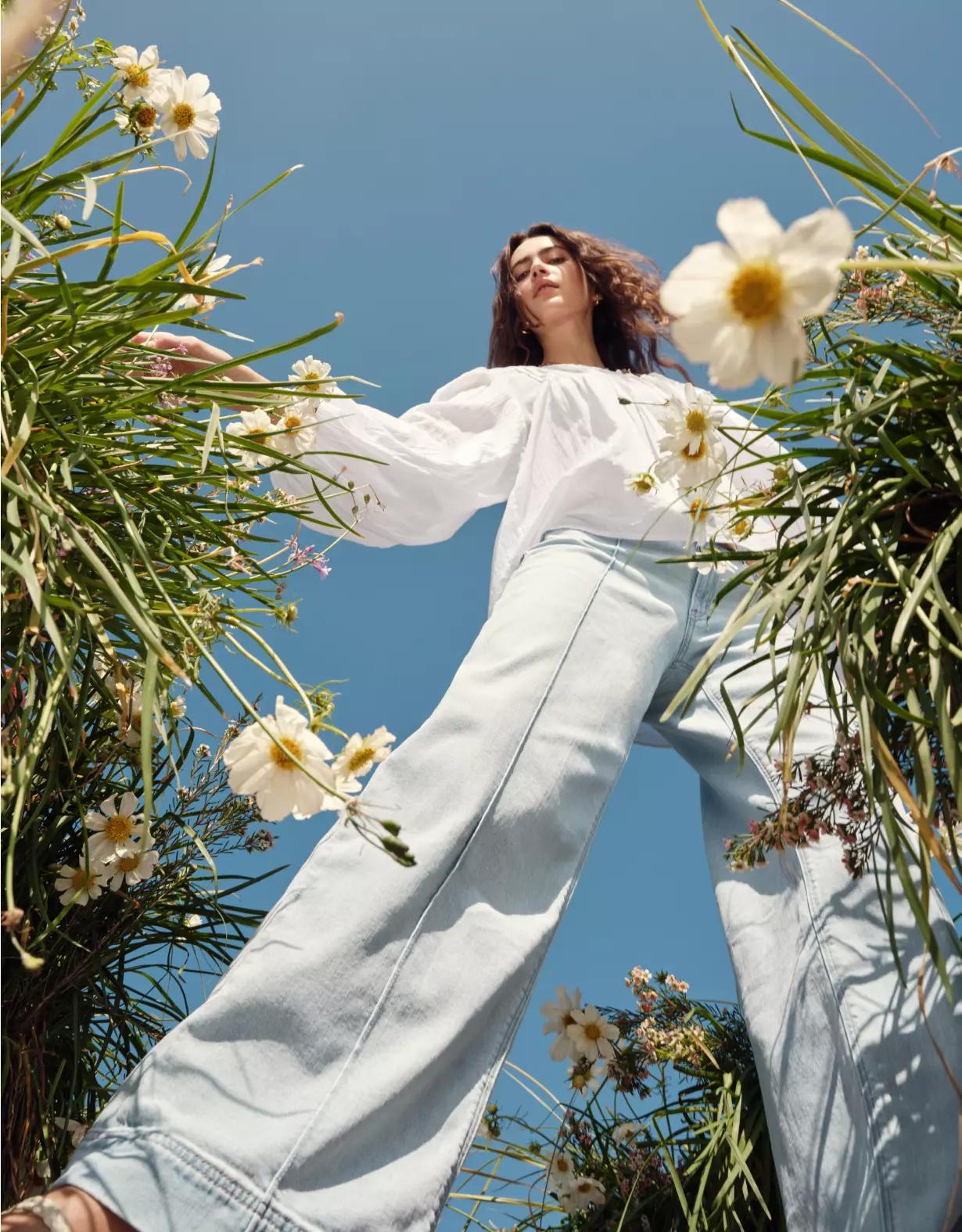 A low rise & wide leg for a cool, slouchy fit.