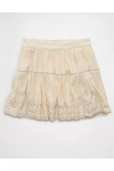 AE High-Waisted Embroidered Ruffle Mini Skirt Women's