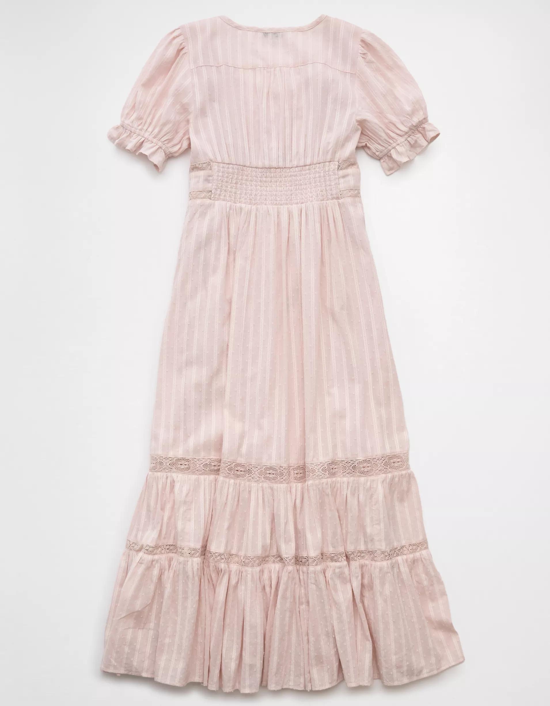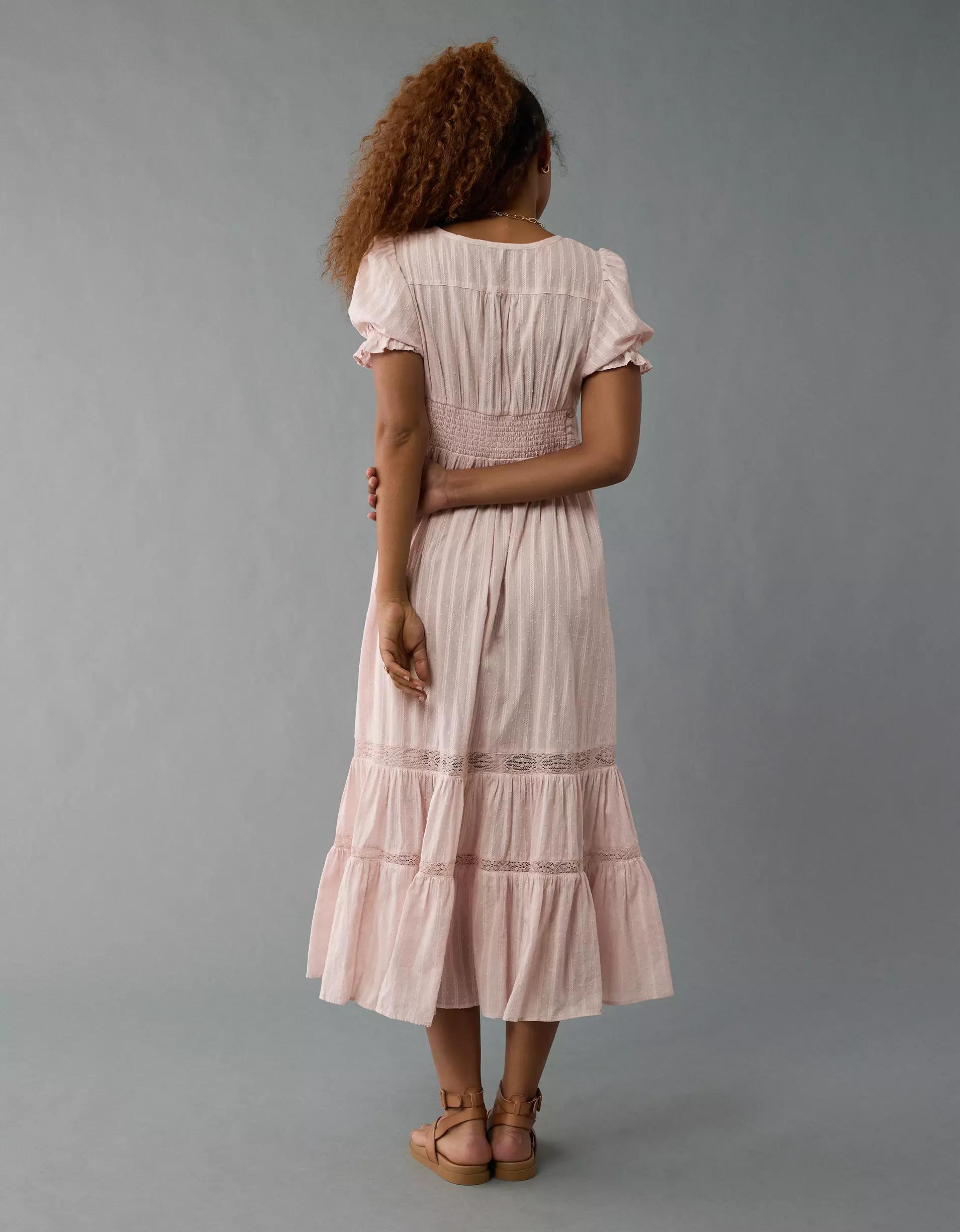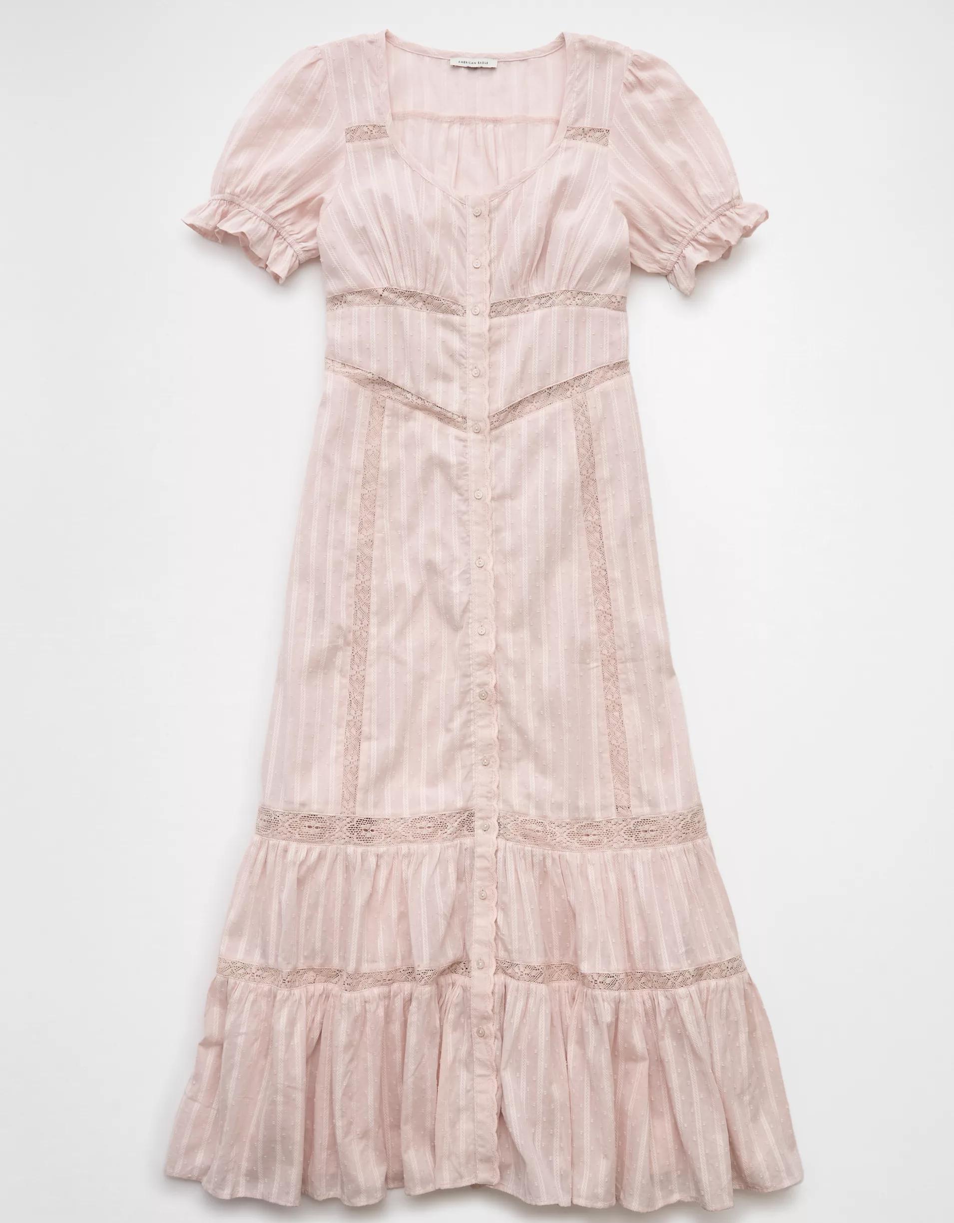AE Lace Puff-Sleeve Button-Up Midi Dress