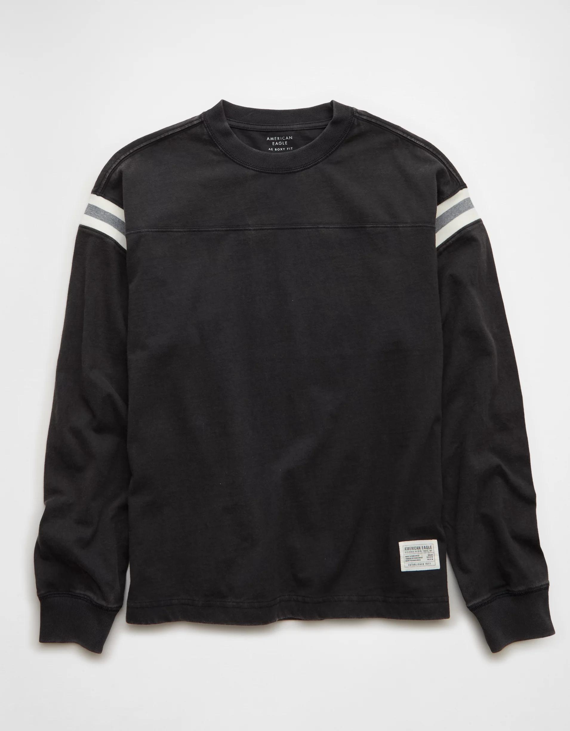 Featuring inset sleeve stripes, this long-sleeve tee will add a varsity-inspired look to any outfit.