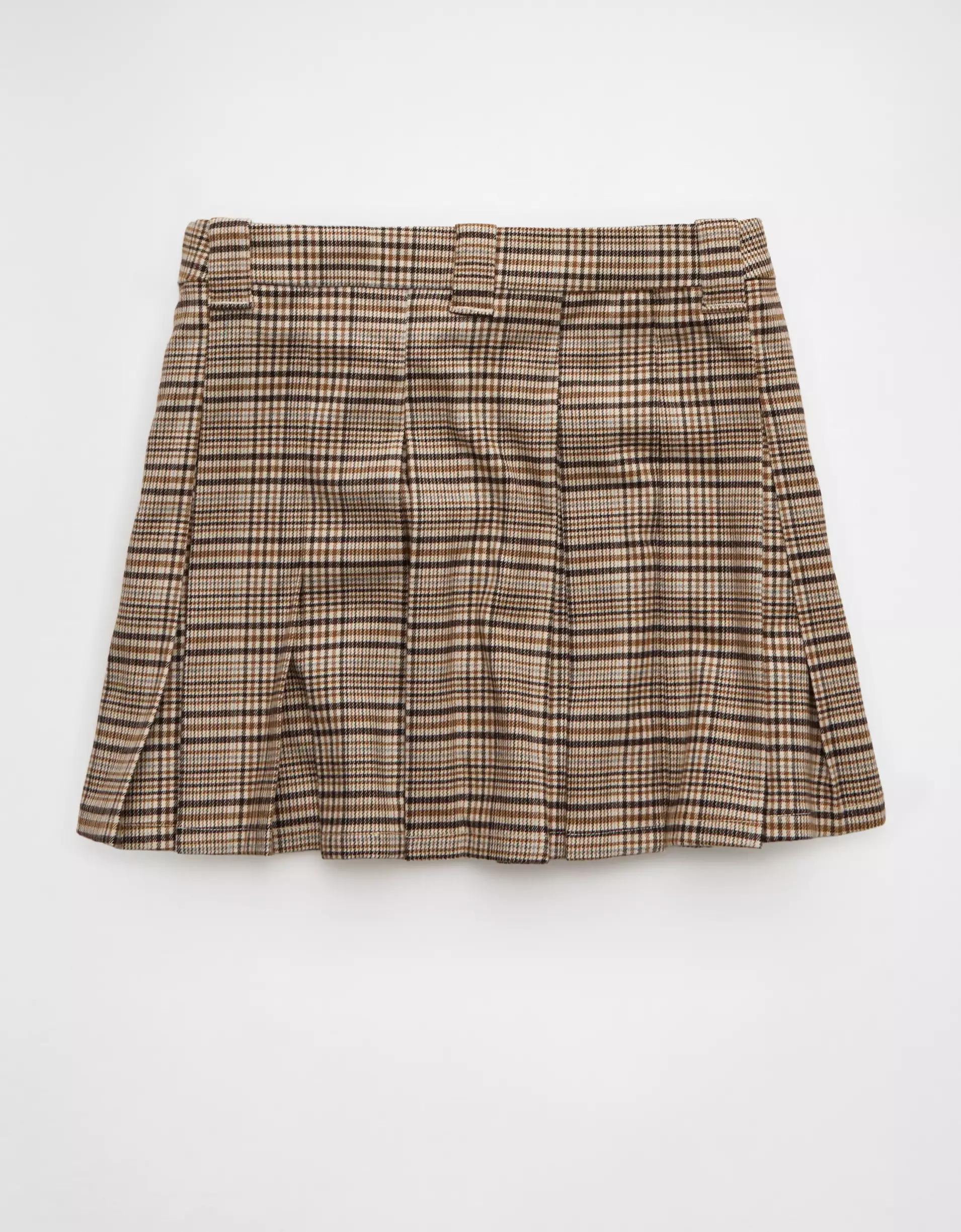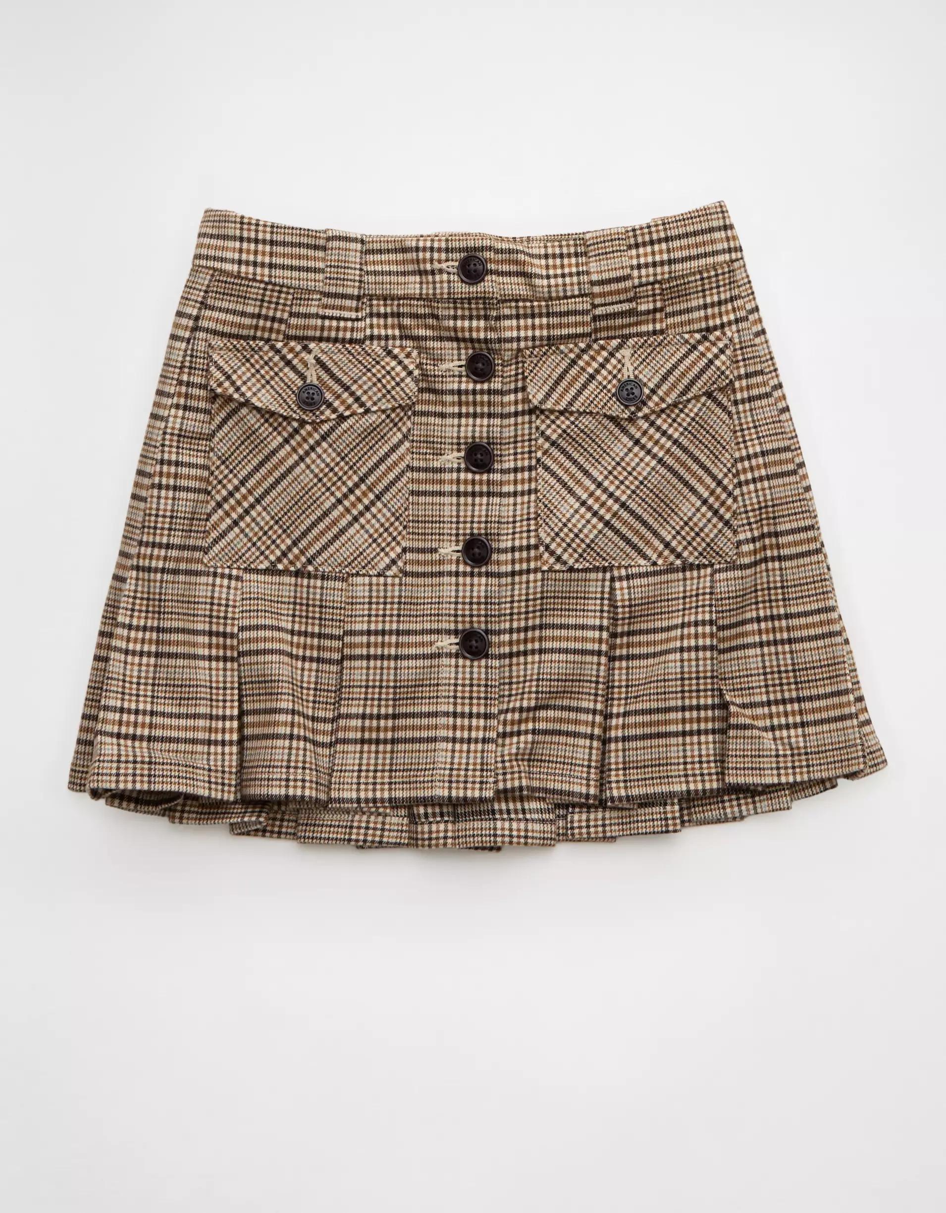 Soft knit/Button-up front/Two front pockets/Pleated skirt/Belt loops