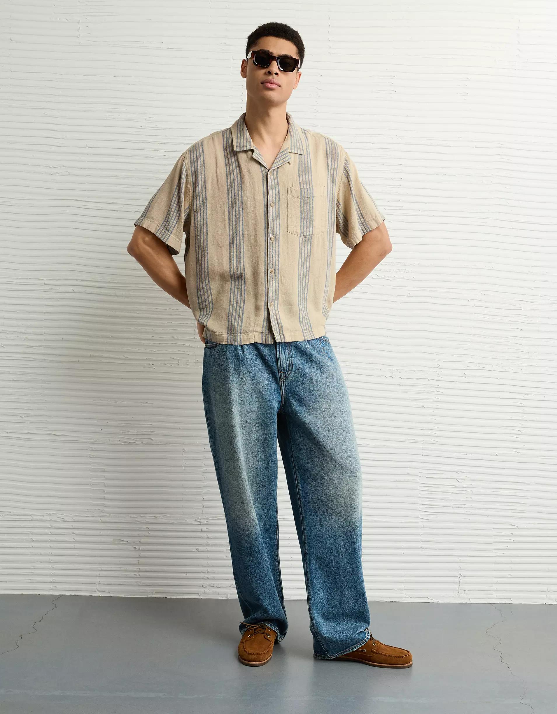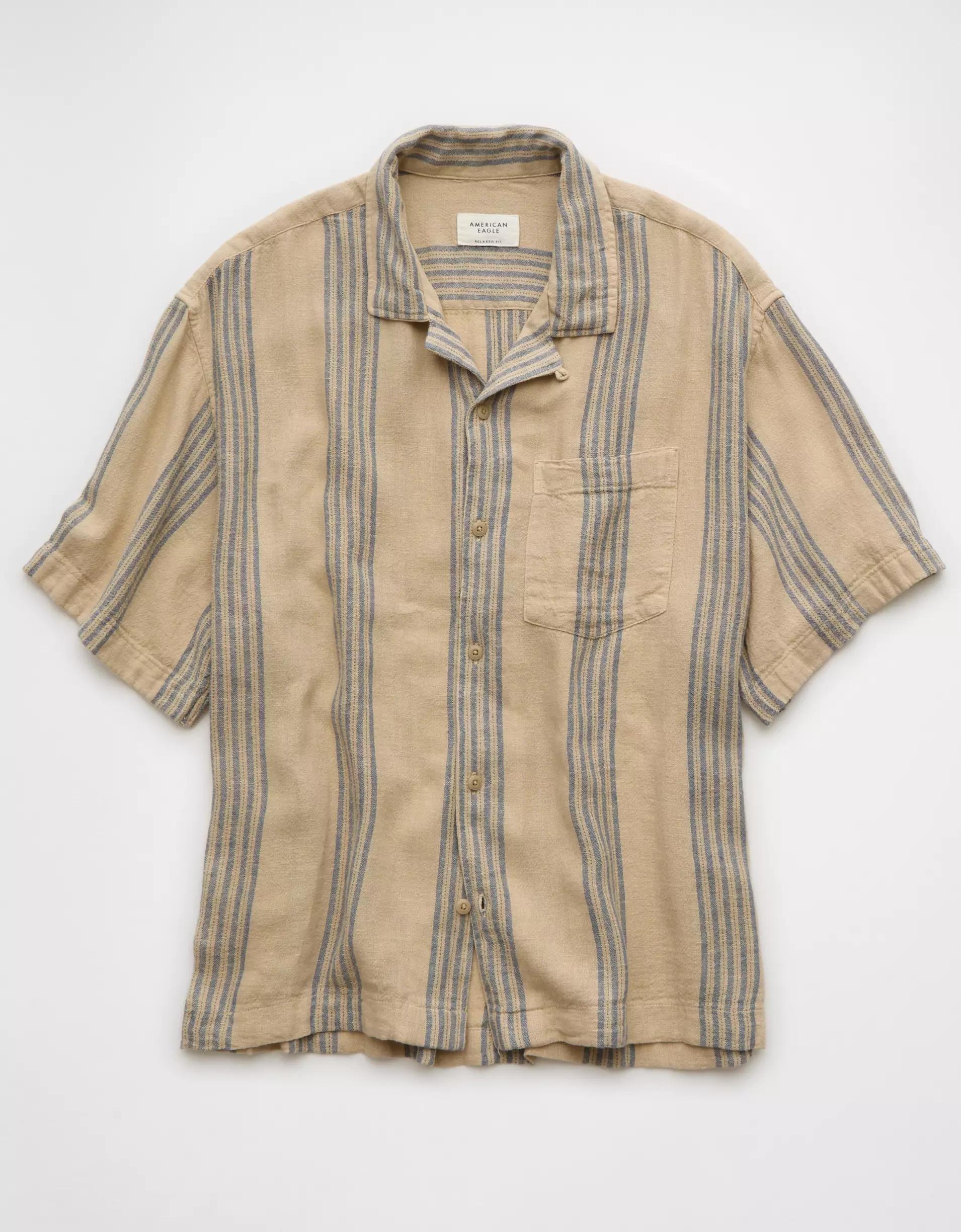 AE Poolside Linen-Blend Striped Button-Up Shirt