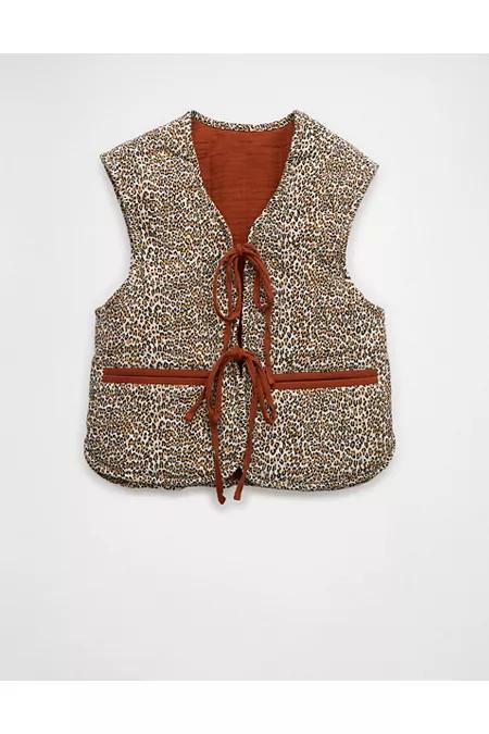 AE Reversible Leopard Tie Front Quilted Vest Women's
