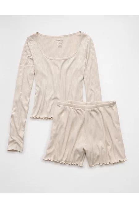 AE Ribbed Plush Baby Tee PJ Set Womens