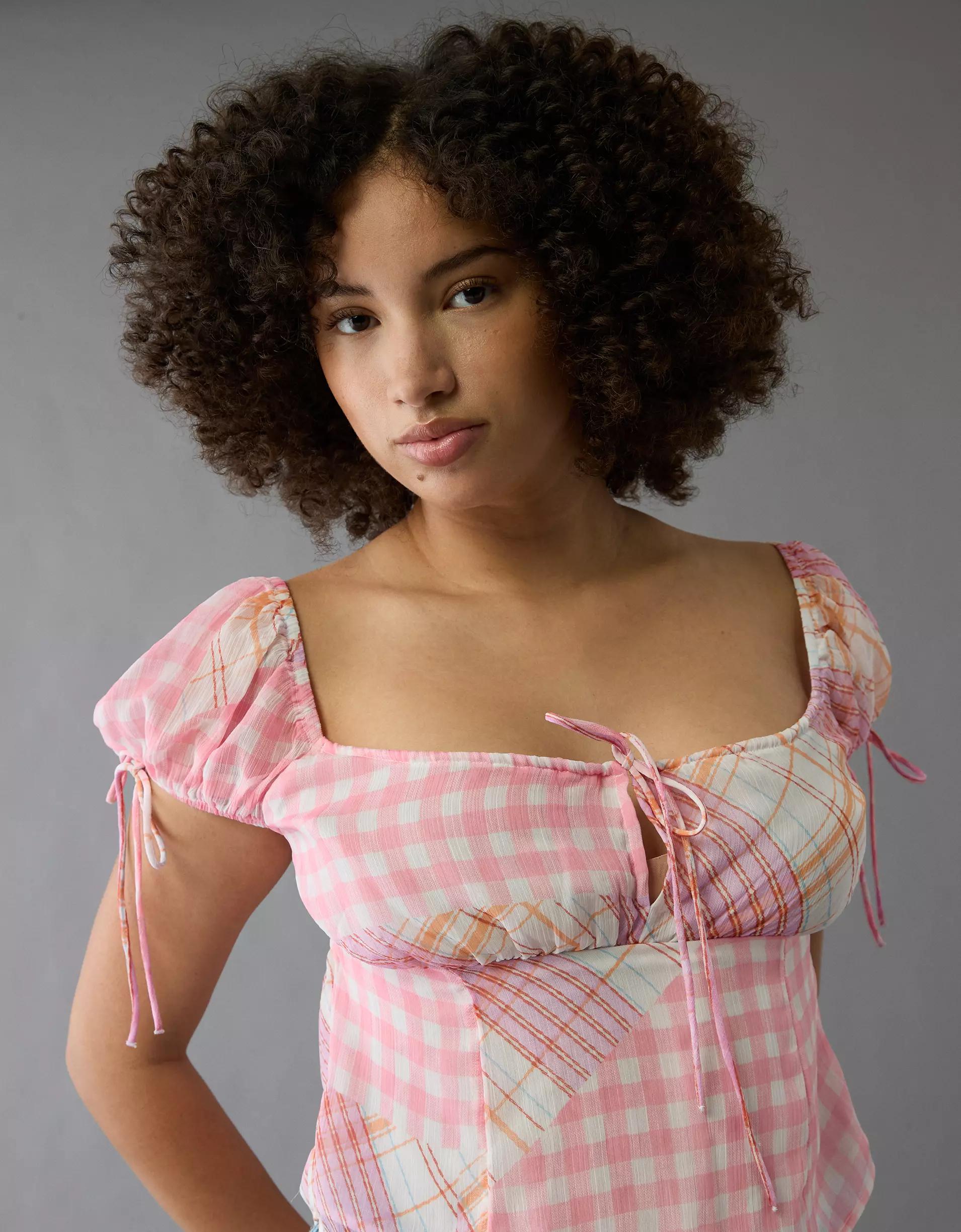 AE Satin Cap Sleeve Patchwork Corset Top Women's