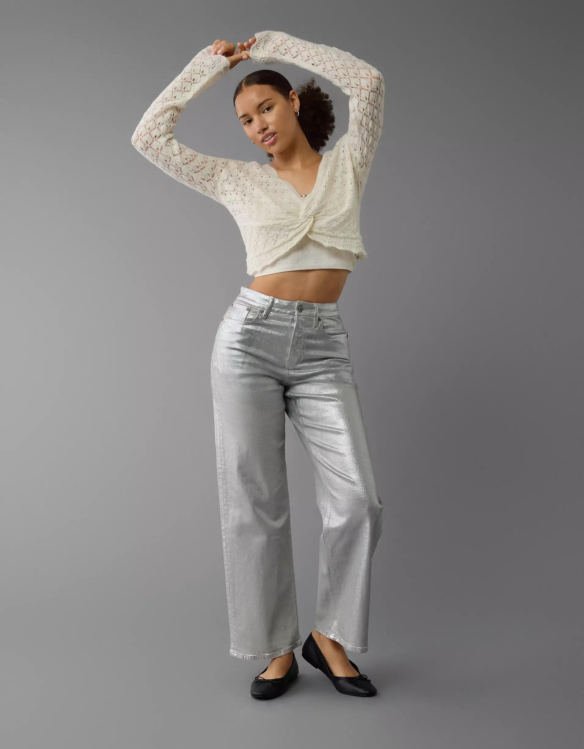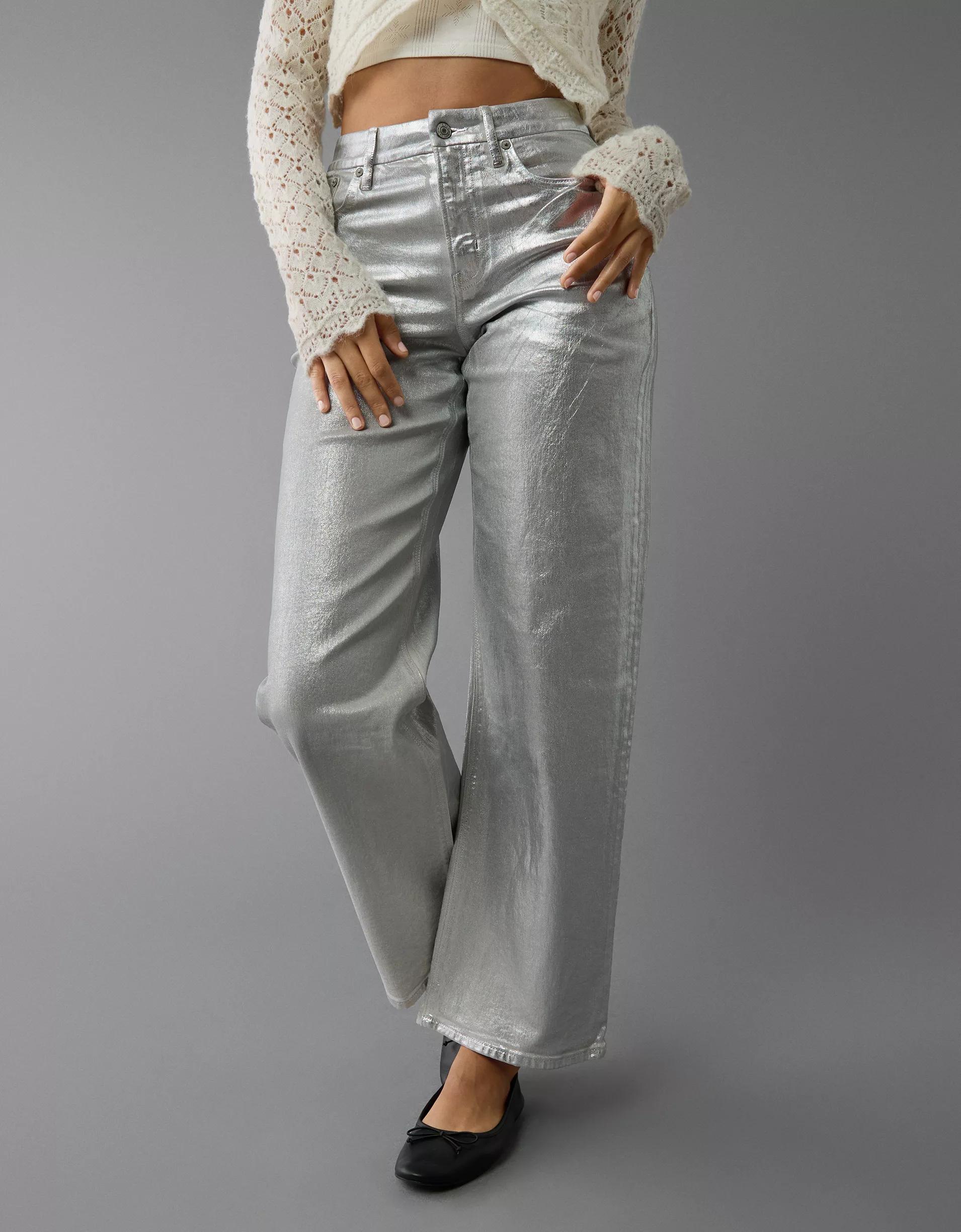 AE Stretch Curvy Metallic Super High-Waisted Baggy Straight Jean