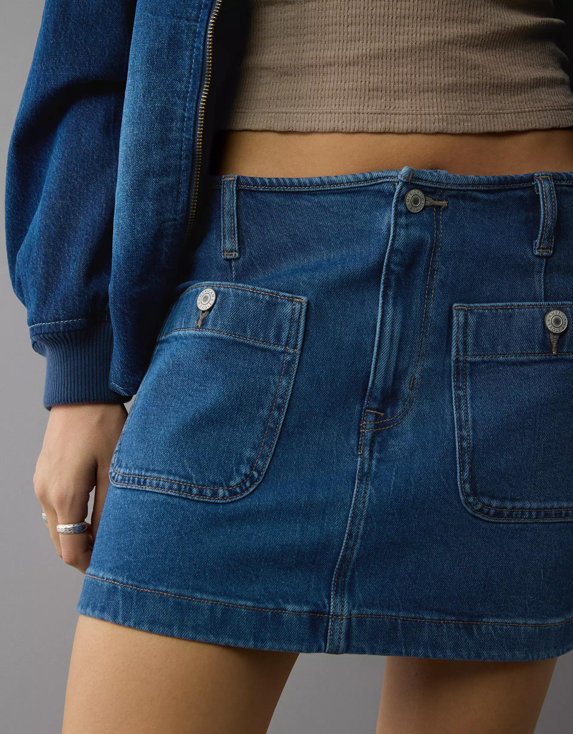 AE Stretch Low-Rise A-Line Denim Mini Skirt