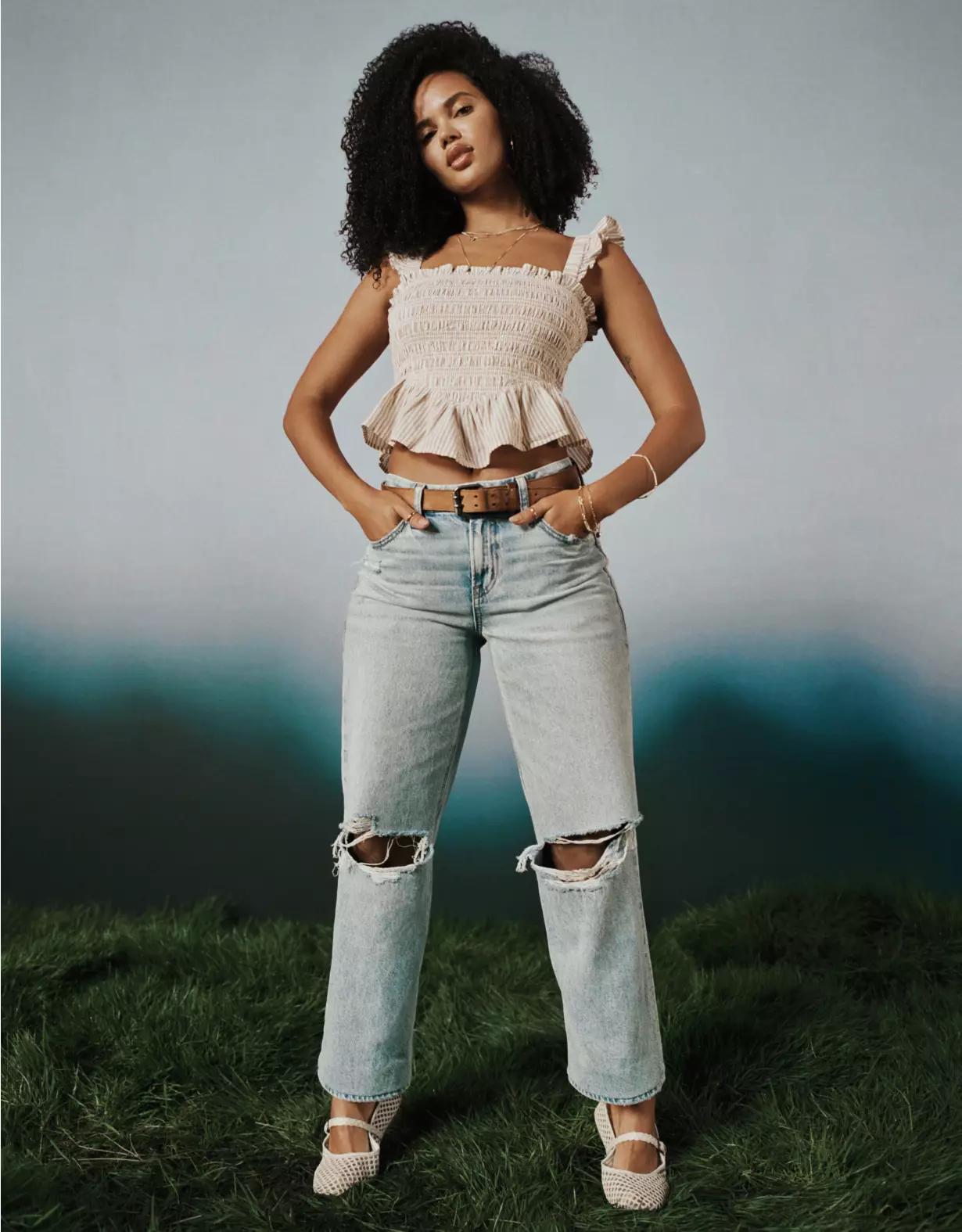 AE Strigid Curvy Ripped High-Waisted Stovepipe Jean