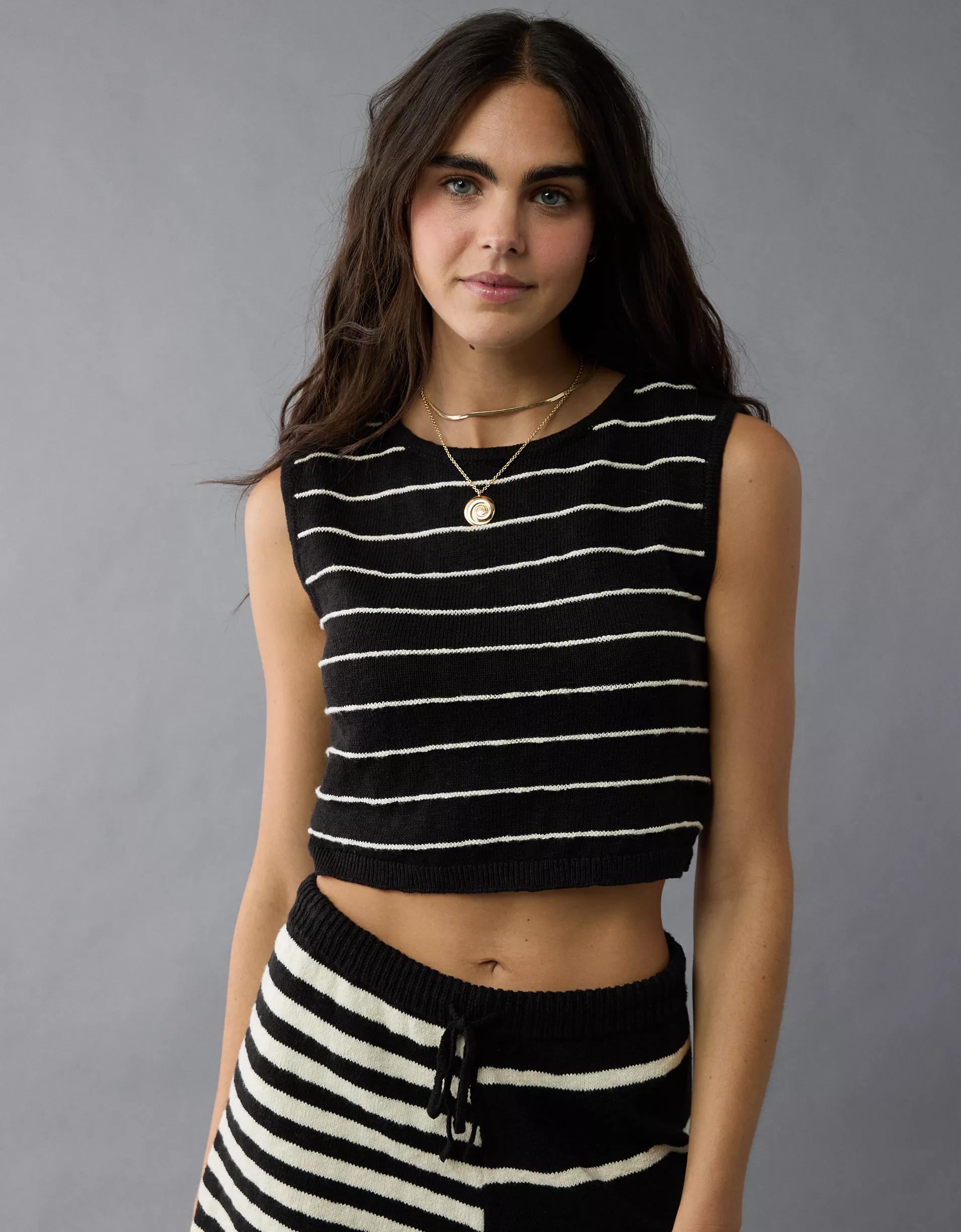 AE Tie Back Striped Sweater Tank Top