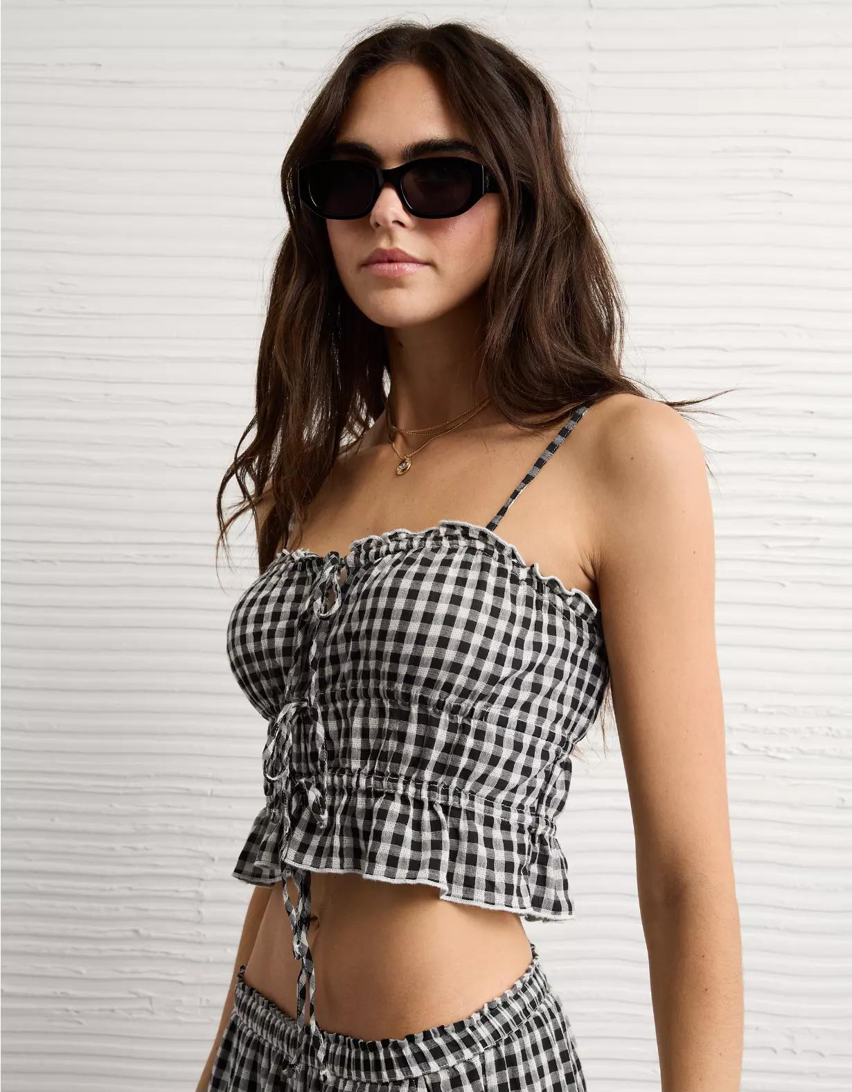 AE Ruched Strap Cropped Tank Top Women's
