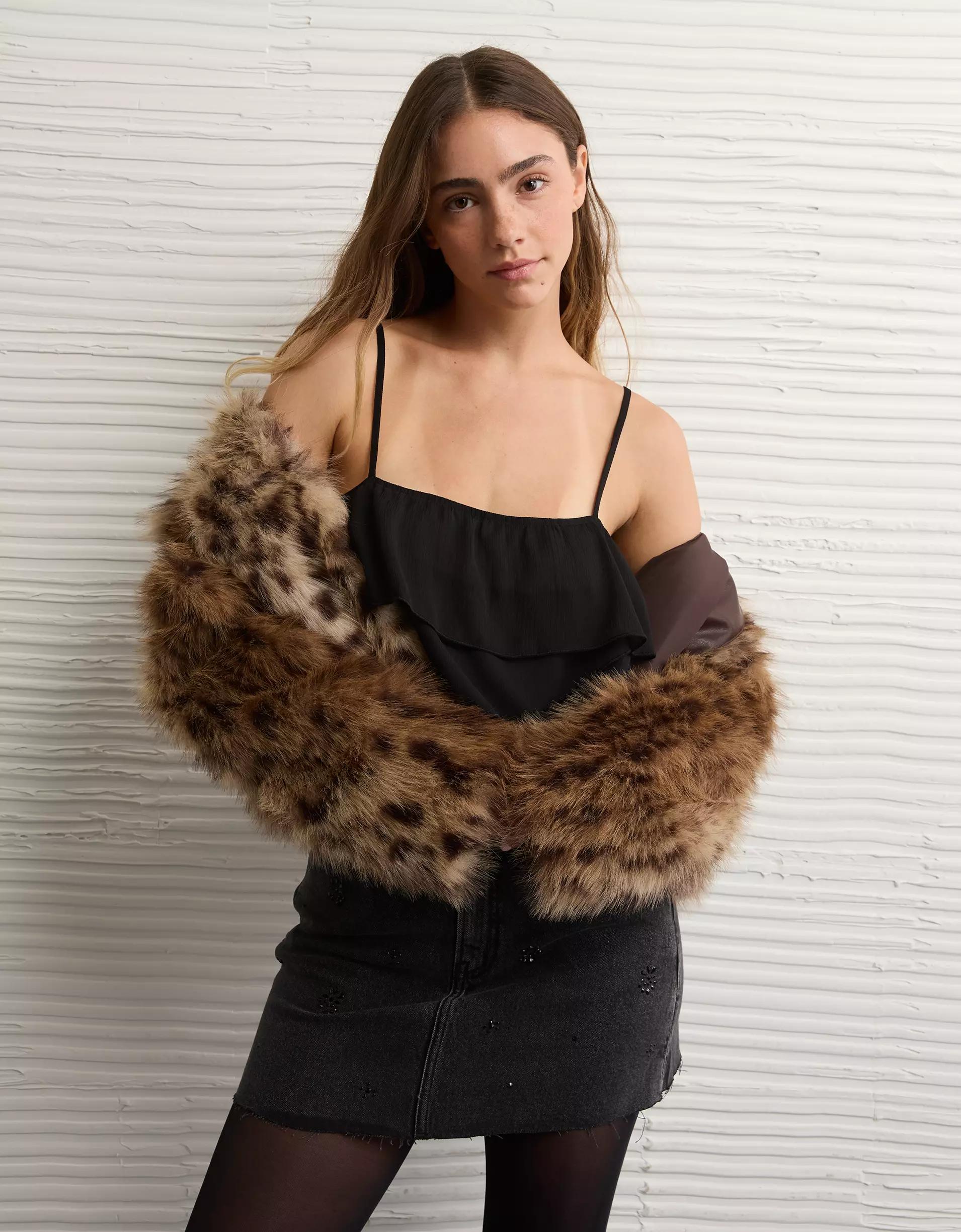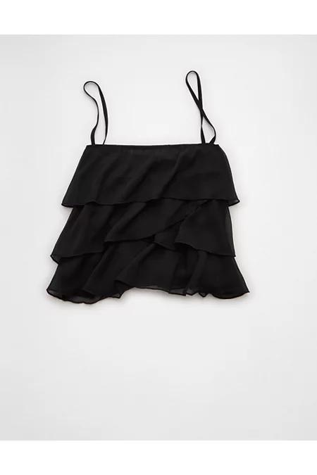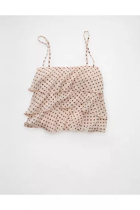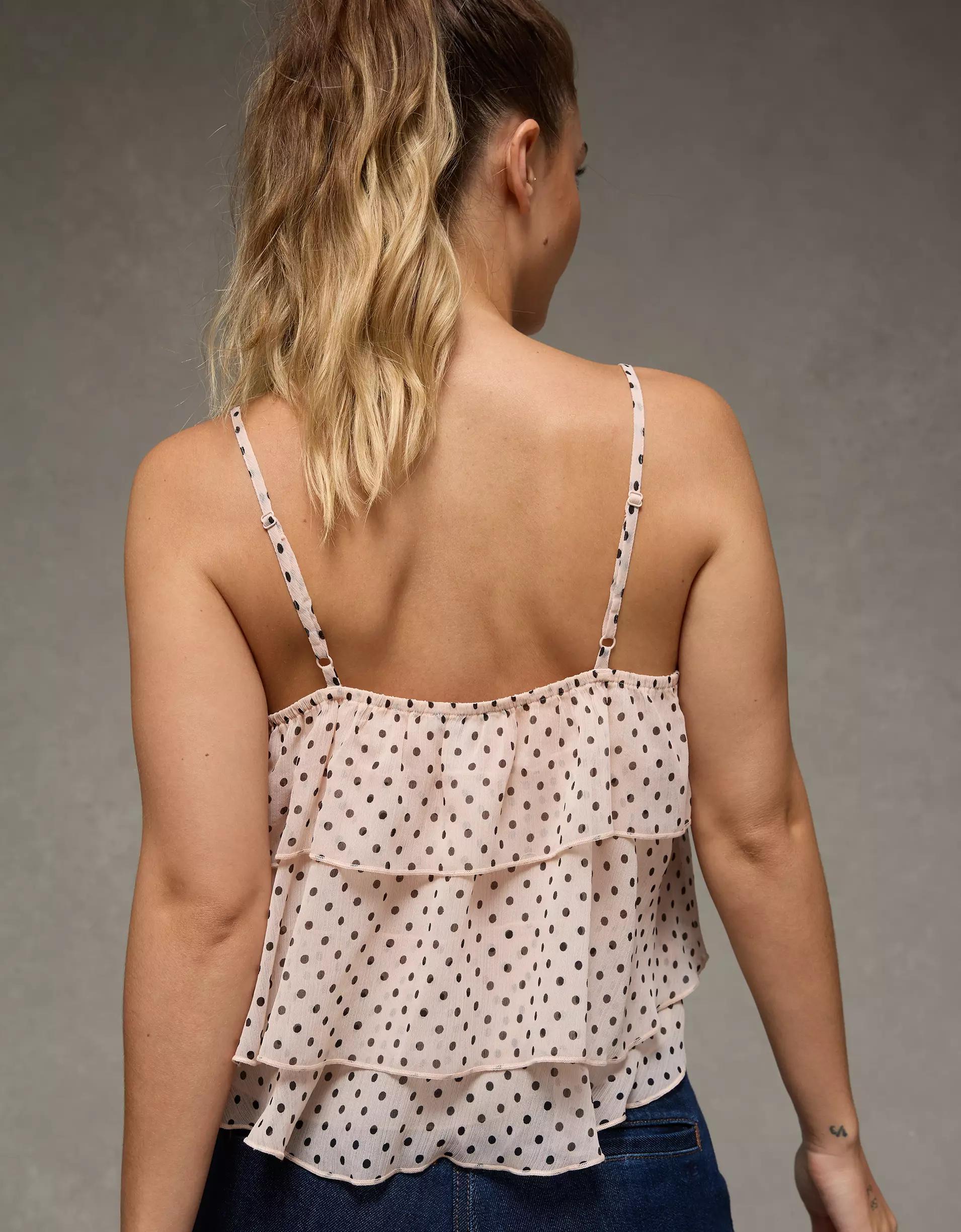 Spaghetti straps/V-neck with tie closure/Ruffle detail at top/Tiered midriff